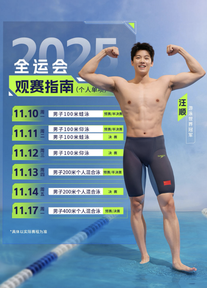 第五次站上全运赛场,已有国家级教练资格在手的“汪指导”个人项目报了四个,除了男子200米、400米两个混合泳项目之外,还有男子100米蛙泳和男子100米仰泳。其中两个混合泳项目,汪顺都已连续三届蝉联冠军,此役他有望实现两个项目的四连冠,续写“全运第一人”的传奇。