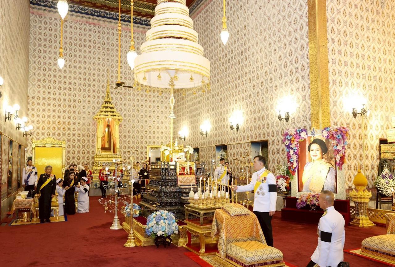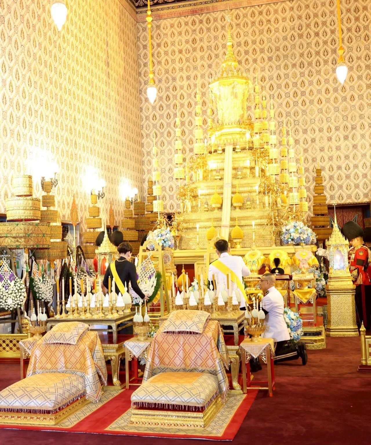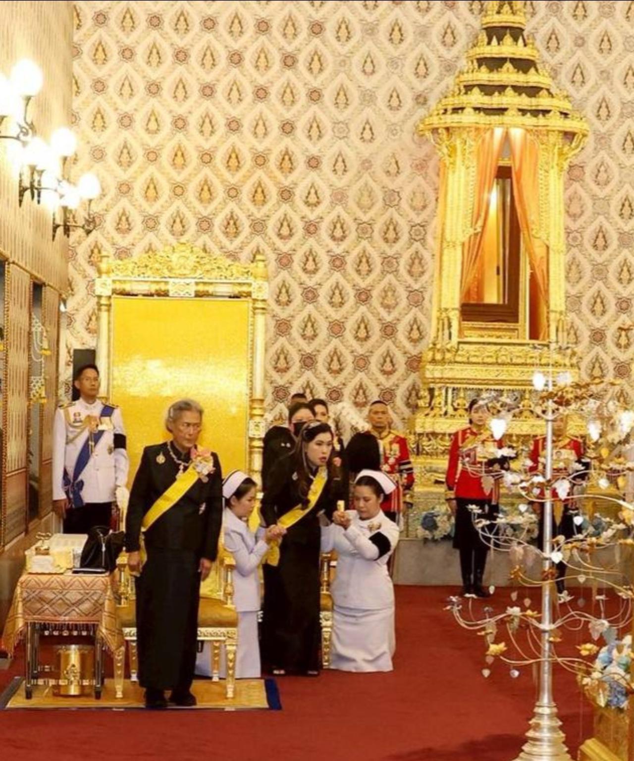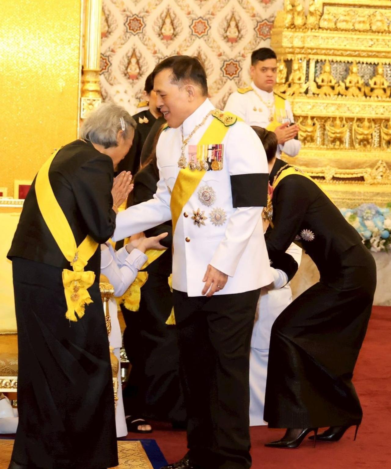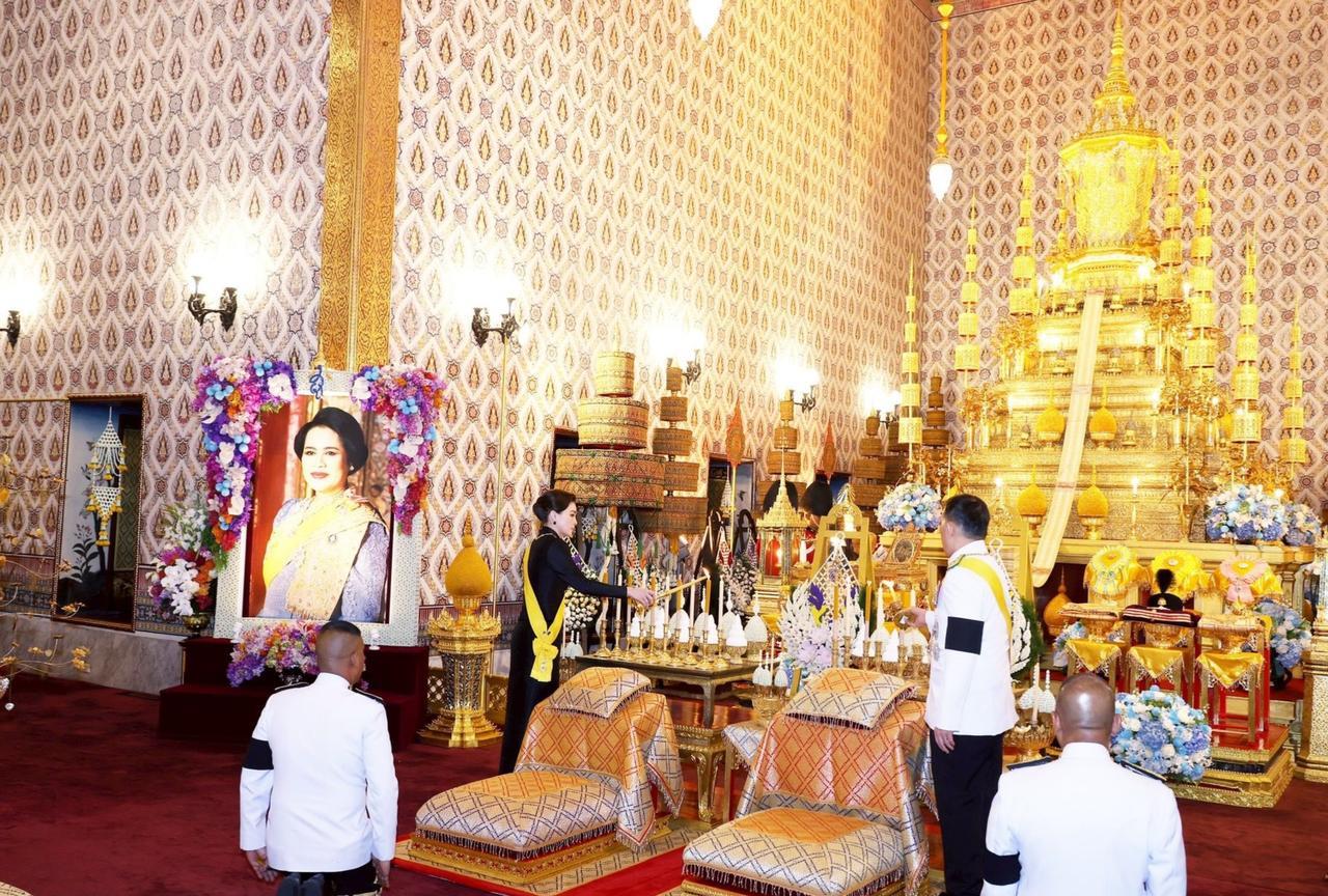 泰王的灿烂笑容,都给了妹妹诗琳通公主 11月7日下午5点18分,国王与王后乘皇家车辆,前往大皇宫律实玛哈巴萨御座厅,为已故王太后诗丽吉,举行为期15天的功德祭祀仪式。提帮功王子、诗妮娜贵妃、诗琳通公主、朱拉蓬公主皆出席。仪式上,国王、王后陛下,均向皇家骨灰瓮敬献了花圈。