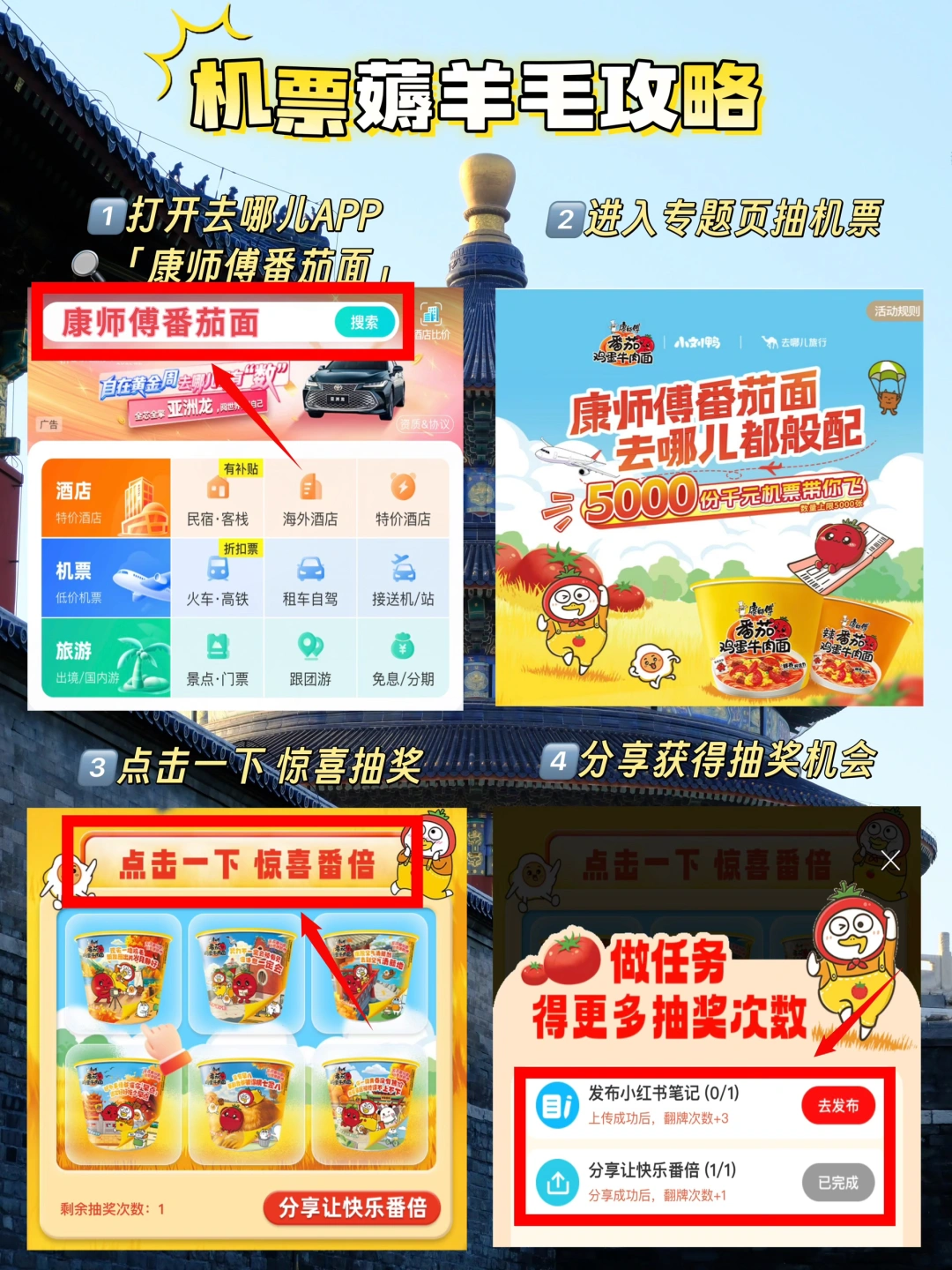 进入康师傅番茄面去哪儿都般配专题页抽机票🎫