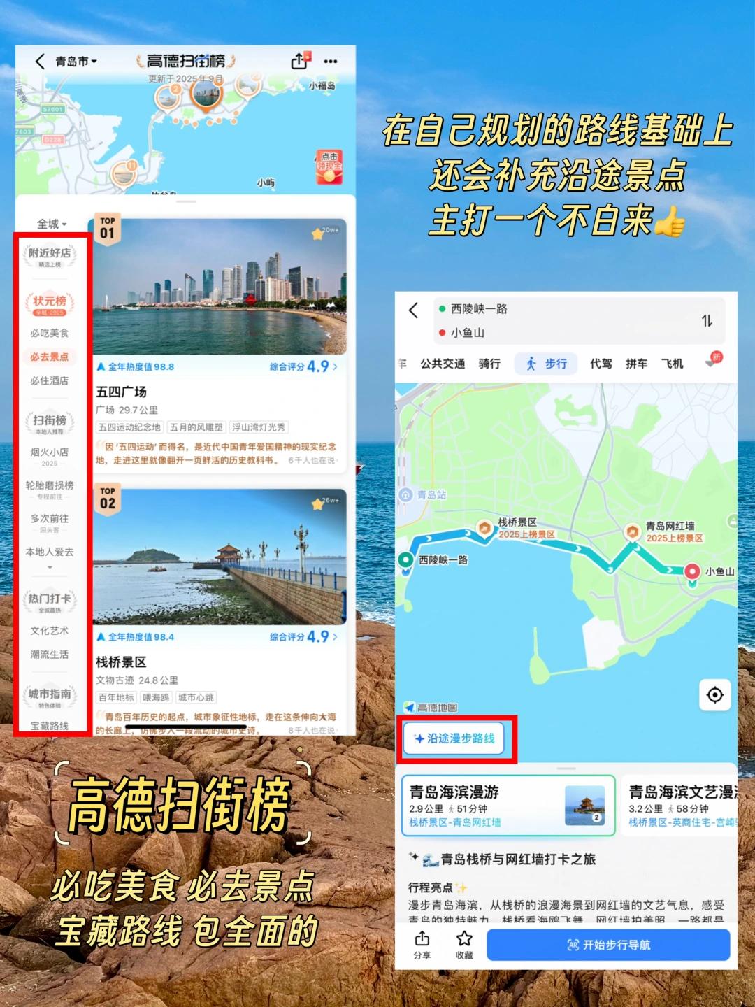 青岛 青岛旅游攻略 青岛旅行 先出发再说 跟着兴趣去旅行 高德扫街榜风光路线 高德地图 高德收藏夹 高德AI路线 青岛citywalk 周末去哪儿 一起去看海 我的私藏旅行路线 假日citywalk 小众打卡地 旅途中的美景 去有海的城市 十一去哪玩 青岛网红打卡地 国庆去哪玩 国庆我要慢慢玩