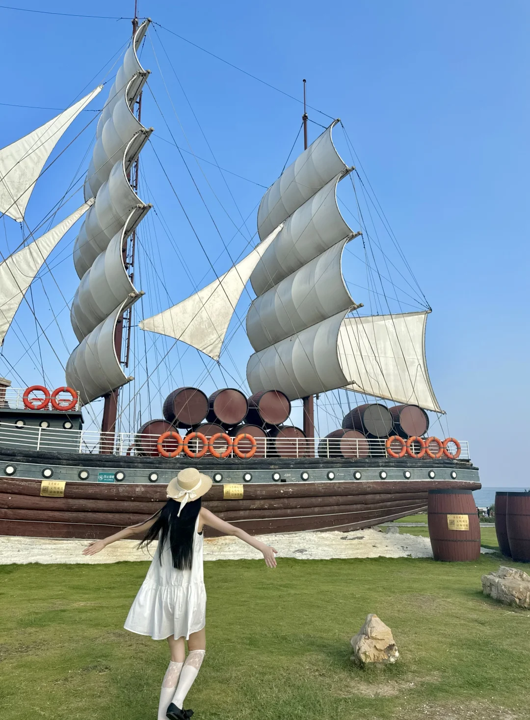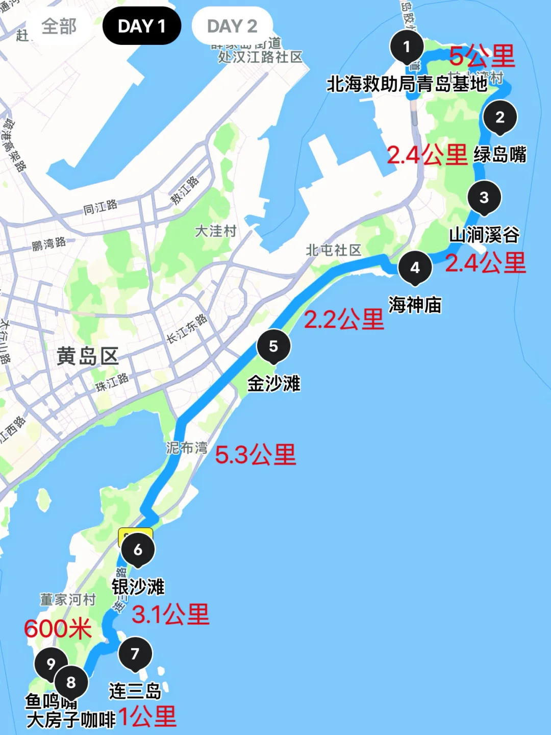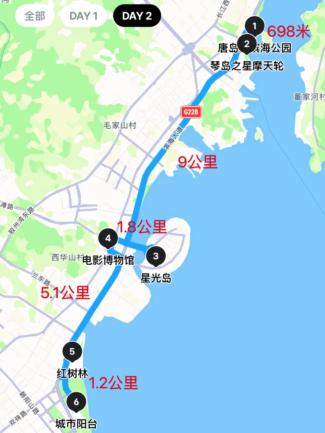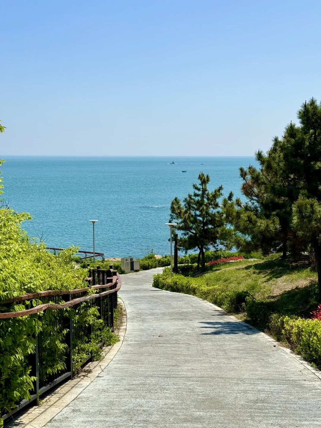 1️⃣唐岛湾:导航滨海公园 沿海边骑双人自行车