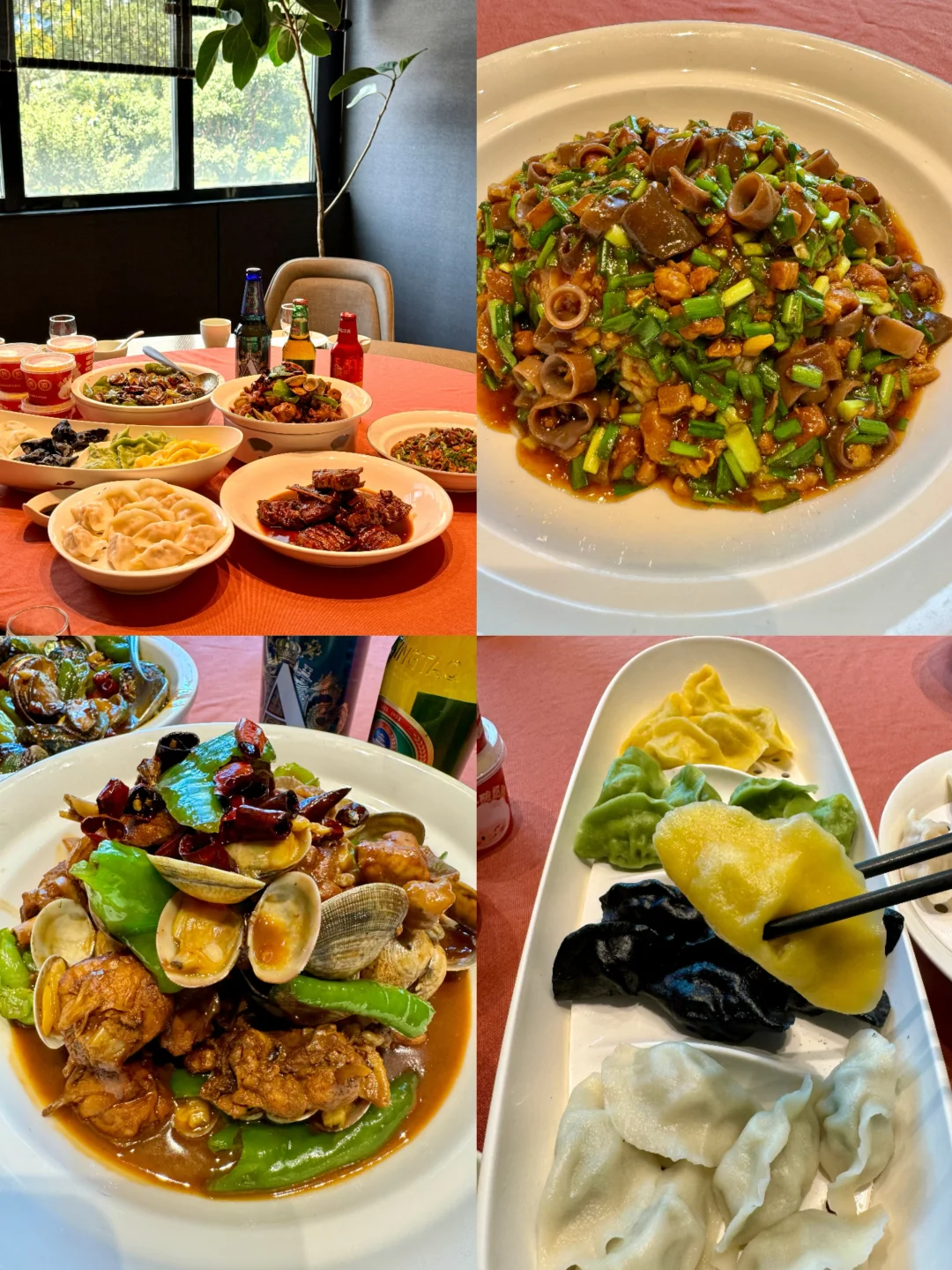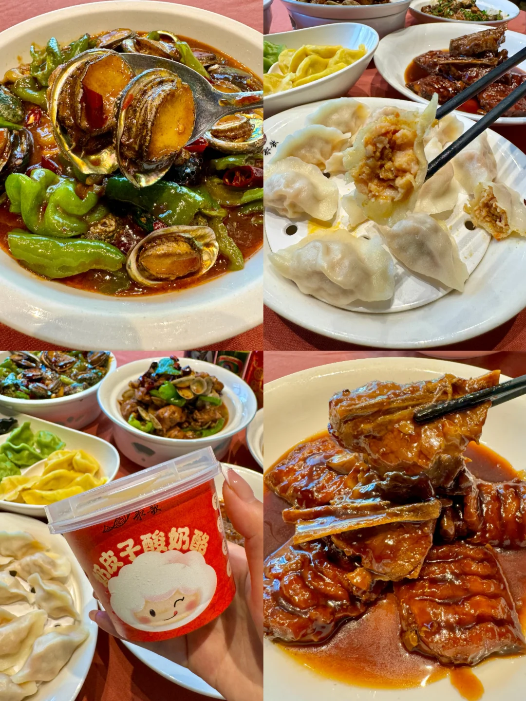 现在正赶上开海 海鲜包新鲜的❗️季节限定的蟹黄水饺🦀必点 香而不腻👍还有四大当家全家福 都是现包现煮的 有墨鱼黄花鱼鲅鱼大虾四种口味 一大口下去 鲜鲜的 贼满足👍刀鱼烧排骨 红岛蛤蜊鸡 海肠捞饭都很鲜亮 正宗青岛味❗️