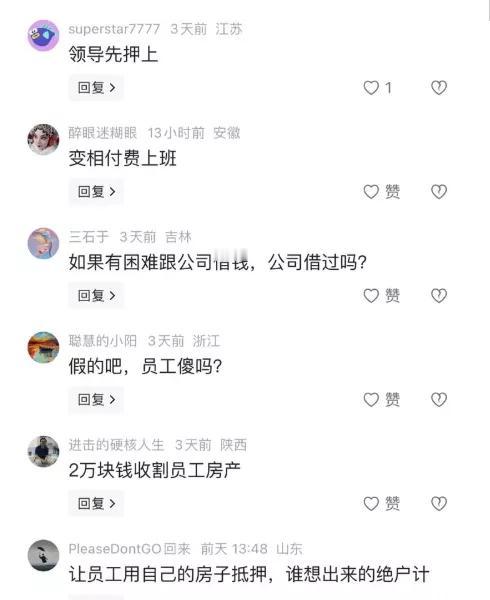 2万块就想让员工押上百万房产?最近华东某设计院一份自愿抵押房产帮公司贷款的倡议书刷屏了!舆论直接炸锅!这哪是共渡难关,分明是让员工贷款上班啊! 公司嘴上说房产安全由公司担保,但专家戳破真相。一旦公司还不上钱,银行有权直接拍卖员工的房子!类似案例早有过,湖州一家服装厂让员工测试额度背贷2000多万,结果公司破产,员工背上百万债务,有人差点因逾期征信崩掉。然而就算公司承诺年底给2万奖励,若资金链断裂,这钱可能根本拿不到。 这是绝户计!2万收割一套房?其实员工抵押房产的风险远超想象。不仅可能失房,还会影响个人征信,甚至被追债。业内提醒甭管公司画多大饼,房产抵押的签字是你自己的,风险最终你得扛! 职场信任不该成风险赌注。比起共渡难关,企业更该琢磨如何合规融资,而不是让员工拿身家填坑!你怎么看?