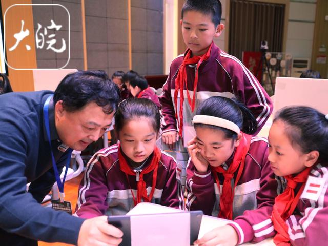 11月7日的育红小学,校园里摆放了来自安徽省内的传统艺术作品,会场后排坐满了来自省内以及芜湖市各县区的美术教师,大家拿着笔记本、举着手机,生怕错过课堂上的每一个精彩瞬间。