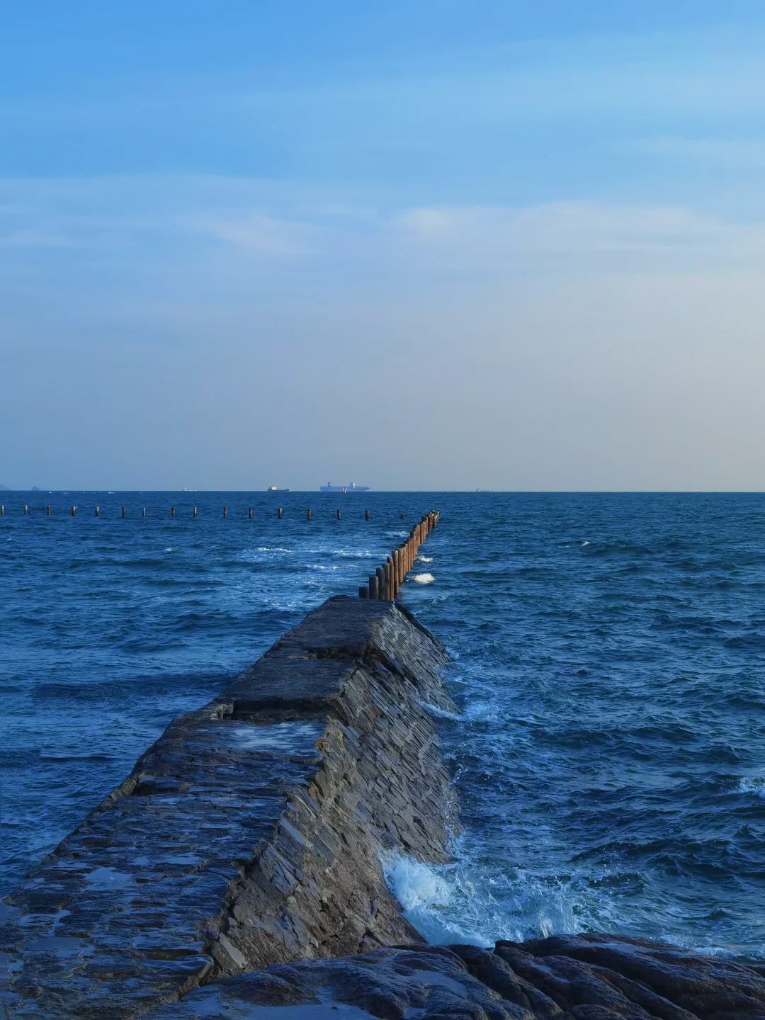🔟第二海水浴场:从蝴蝶楼出来沿着海边一直走太美了,延伸入海的堤坝,旁边大礁石下就是网红山洞
