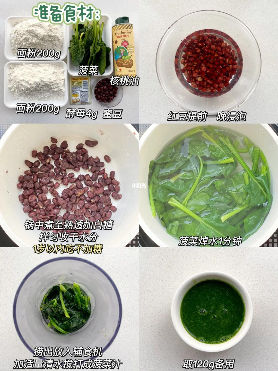 🥬菠菜吐司馒头的具体做法见图片,有不清楚的可以给我留言哦!