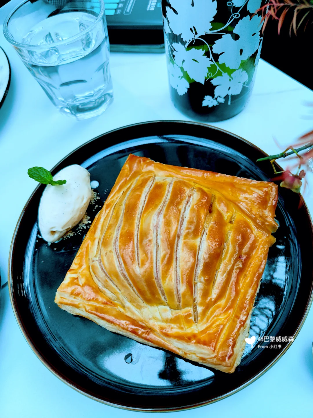 另外的话,一定要点那个甜品就是苹果派冰淇淋超级好吃好吃的吧,而且一点都不甜很好吃,把酸酸的苹果味和融合了它的将之一起包着苹果树里面的烤串的感觉的酥脆,那种层次感非常棒,而且整个的呈现得很金黄剔透,热的时候切开 简直 Amazing