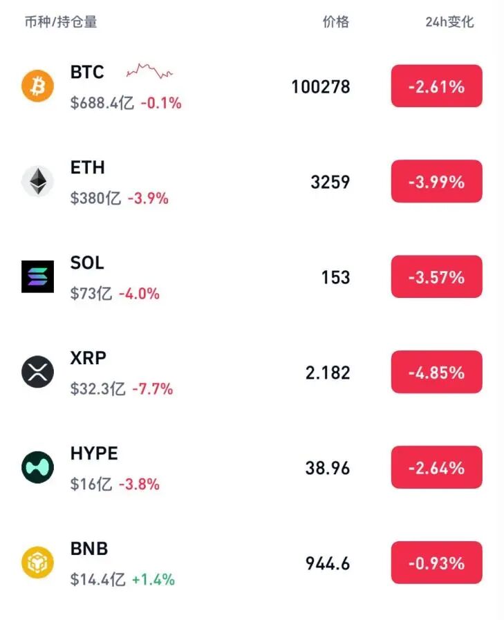 截至记者发稿,比特币报100031.4美元/枚,24小时跌幅达2.71%。
