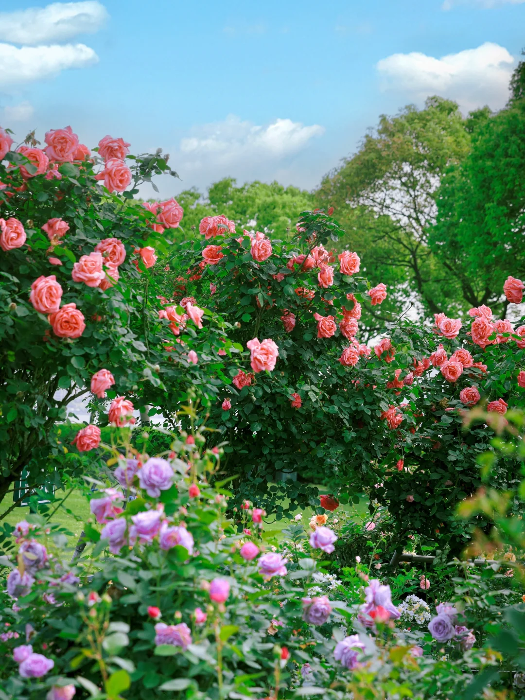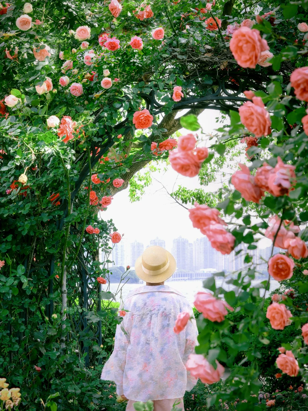 当湖畔的风偷走了时间🌬️ 却在欧月园的褶皱里藏满温柔🥀 四月的月季🌹攀上藤蔓🌿 将金鸡湖🌊的蓝揉碎成花瓣💙 石板小径蜿蜒 头顶是垂落的粉色🌸瀑布 脚下是探出围栏的初夏☀️ 无须追赶花期🌹 这里的浪漫🩷从春末绵延至深秋🍁 每一朵褶皱里☁️ 都藏着诗与远方的私语✨ . 🌹位置:苏州金鸡湖[欧月园] 🎫门票:免费 📸2024.05.04 .