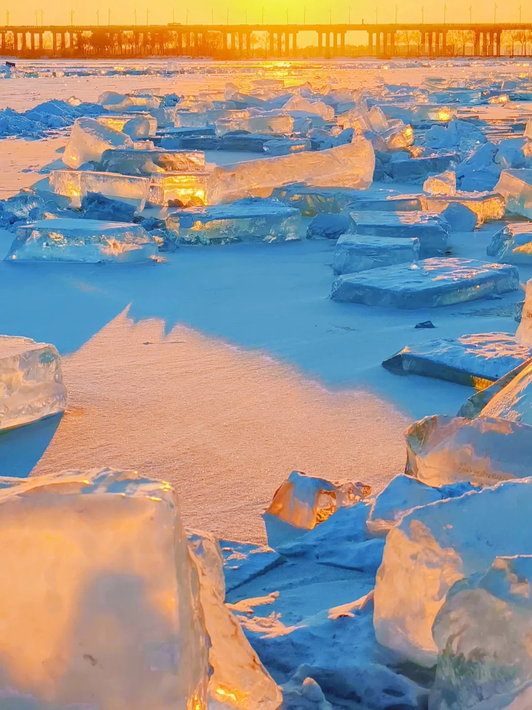 大家心心念念想拍的哈尔滨钻石海🌊 今天已经被封❌ 不能进去拍摄📸 不过我找到他的平替🌇 虽然不及钻石海大💎 但是已经很美了❄️ . 📍松花江湿地 .