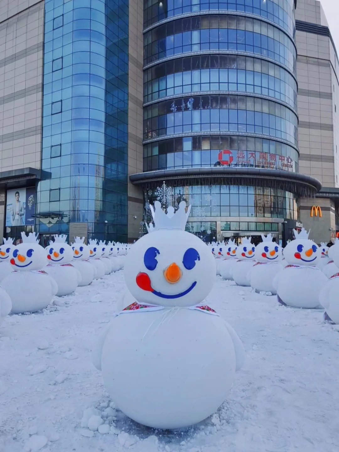 震惊‼️哈尔滨市区惊现雪王👑兵马俑‼️