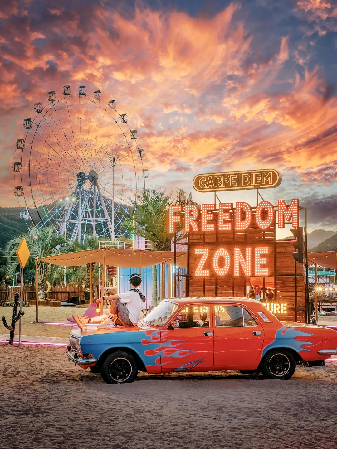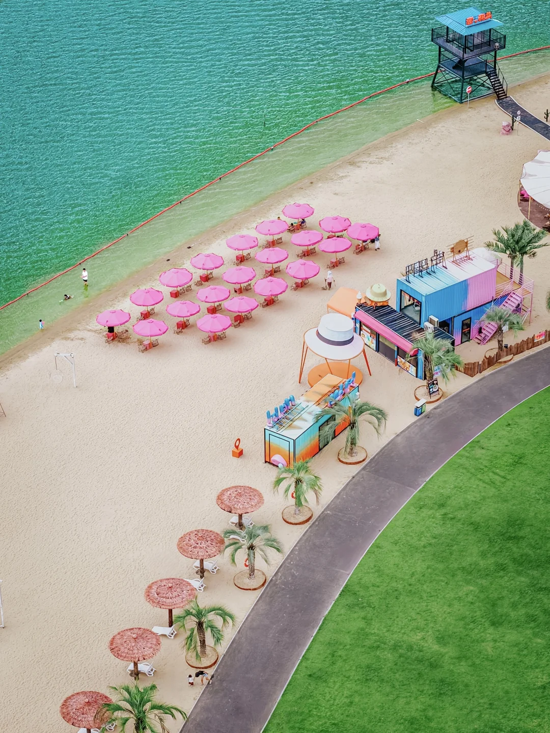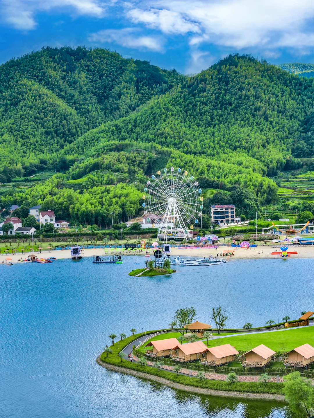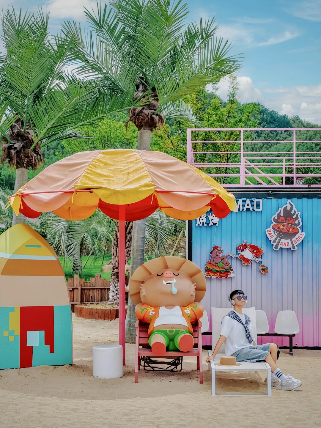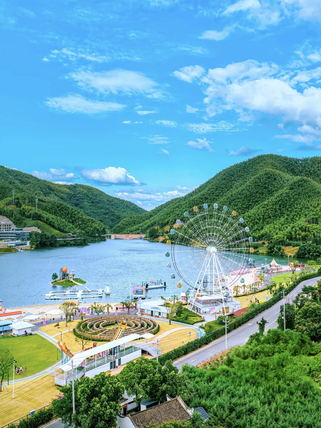 这个夏天不用飞三亚也能踩进椰林沙滩🏖️ 不用去瑞士也能闯进竹海青山🌴 在安吉藏着片秘境🏞️ 上午踩沙玩浪追着彩虹滑道疯跑🌈 傍晚坐进高空座舱🎡 看落日🌄把青山染成金箔 风里裹着竹叶香和水汽💦 一天把两种浪漫狠狠焊在身上☀️ .