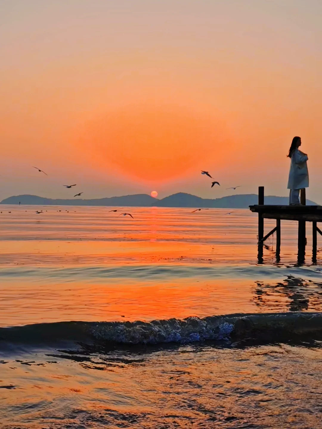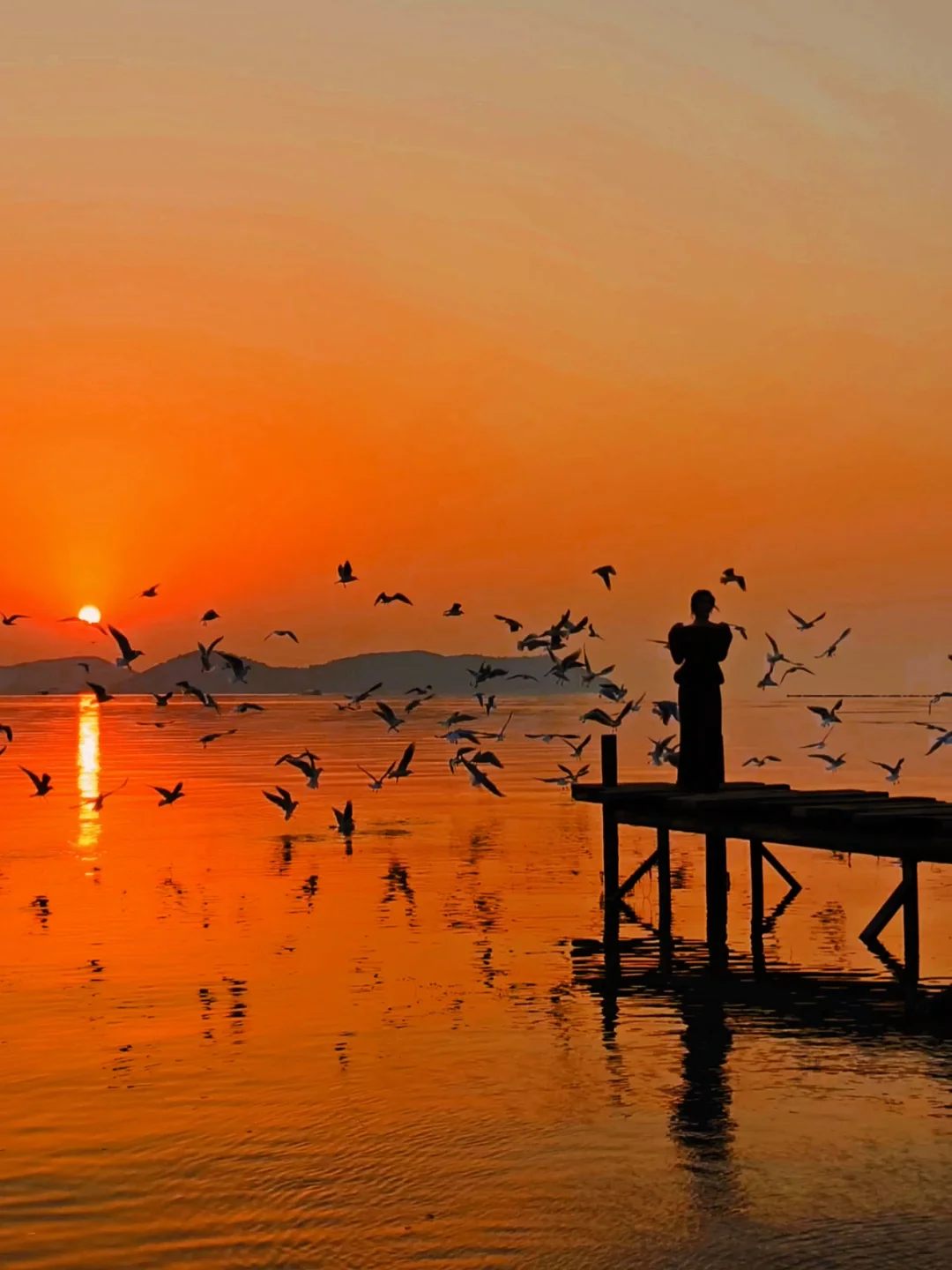 不用去无锡鼋头渚人挤人看红嘴鸥啦🕊️ 在苏州太湖 就能免费‼️‼️免费‼️‼️免费‼️‼️ 看到超美的红嘴鸥🕊️ 当夕阳🌇的余晖撒在湖面 这浪漫❤️的韩剧氛围感 瞬间拉满‼️ . 观赏红嘴鸥小Tips: 1️⃣蕞好选择晴天,这样可以看到超美晚霞🌇 2️⃣可以选择下午三点左右到,这样不仅可以拍到碧海蓝天下的红嘴鸥,还能提前占好位置等待晚霞 3️⃣提前准备好充足的面包🍞这里的红嘴鸥🈶些怕人!需要连续的扔面包它们才会飞过来 4️⃣可以提前准备一个小的露营灯,拍晚霞人像很有氛围感