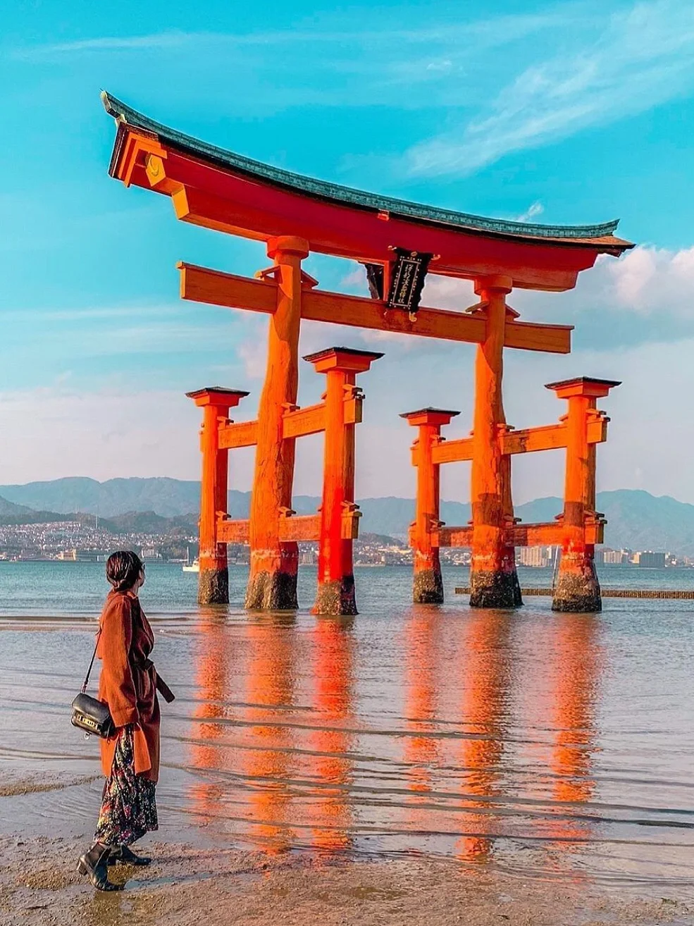 ⑥广岛·严岛神社:主要祭奉的日本古传说中的三位海洋女神,神社前方立于海中🌊的大型鸟居是被称为“日本三景”之一的严岛境内最知名的地标。