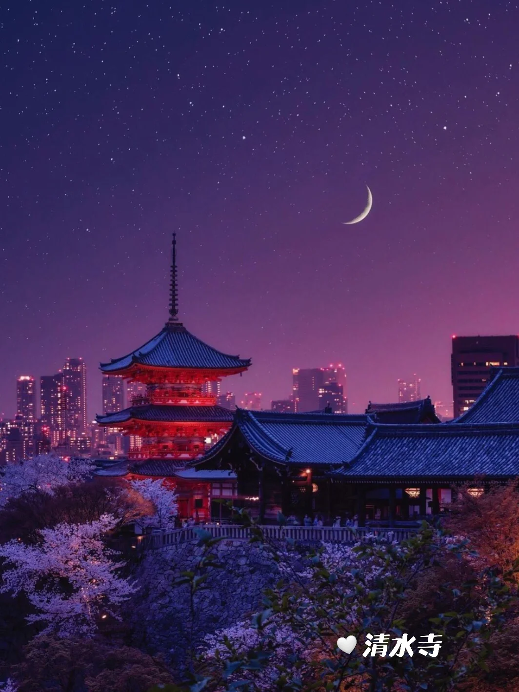 ⑦京都·清水寺:落于京都东面的一座小山上,从这里可以俯瞰京都全景。寺内巨大的格构式露台是日本最著名的形象之一。