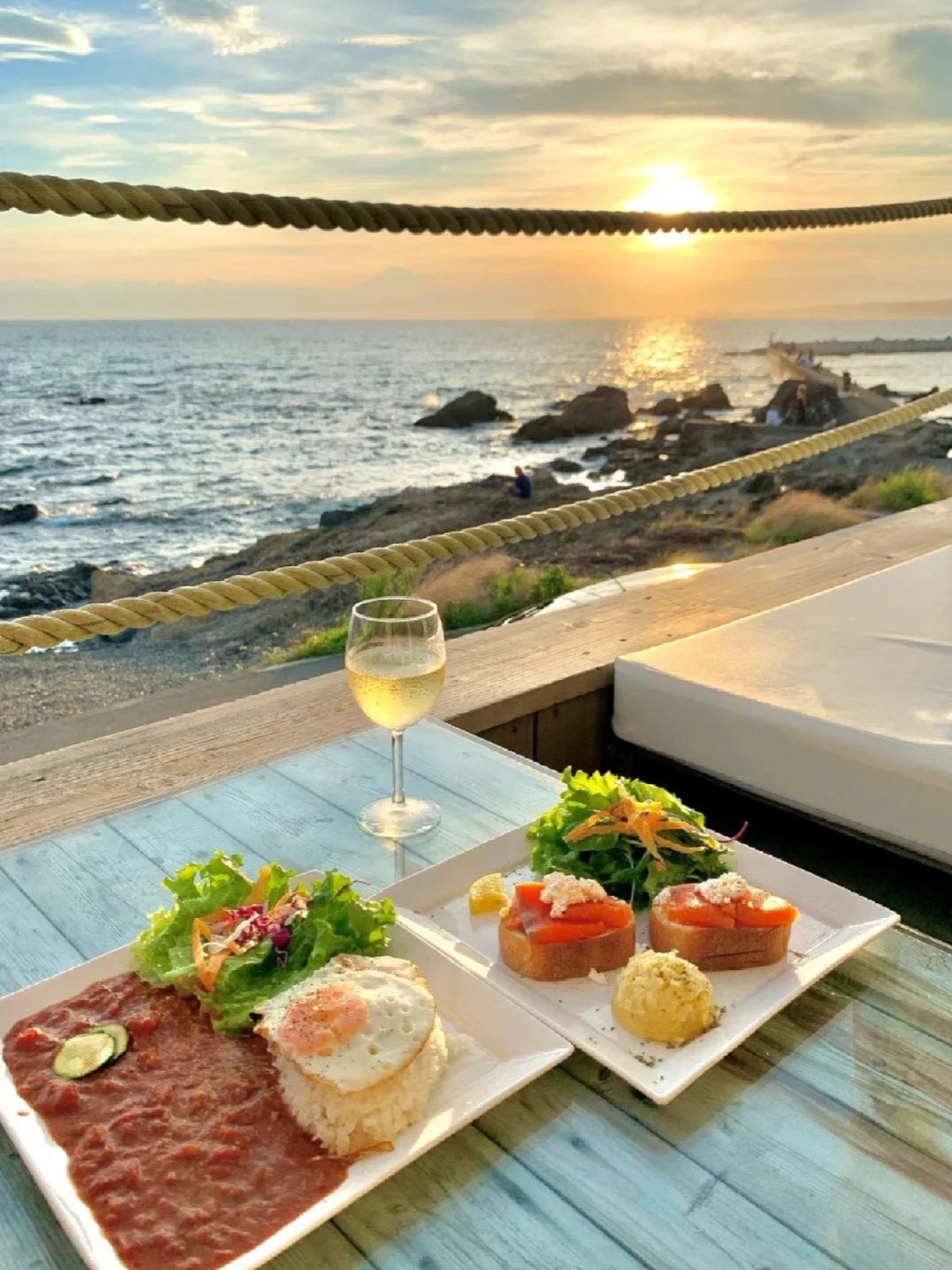 ▪️这家店位于镰仓往南,在叶山著名海岸线上,也是经常可以刷到的🔥网红店,坐在咖啡店看日落简直太享受!!随手一拍都可以当手机壁纸