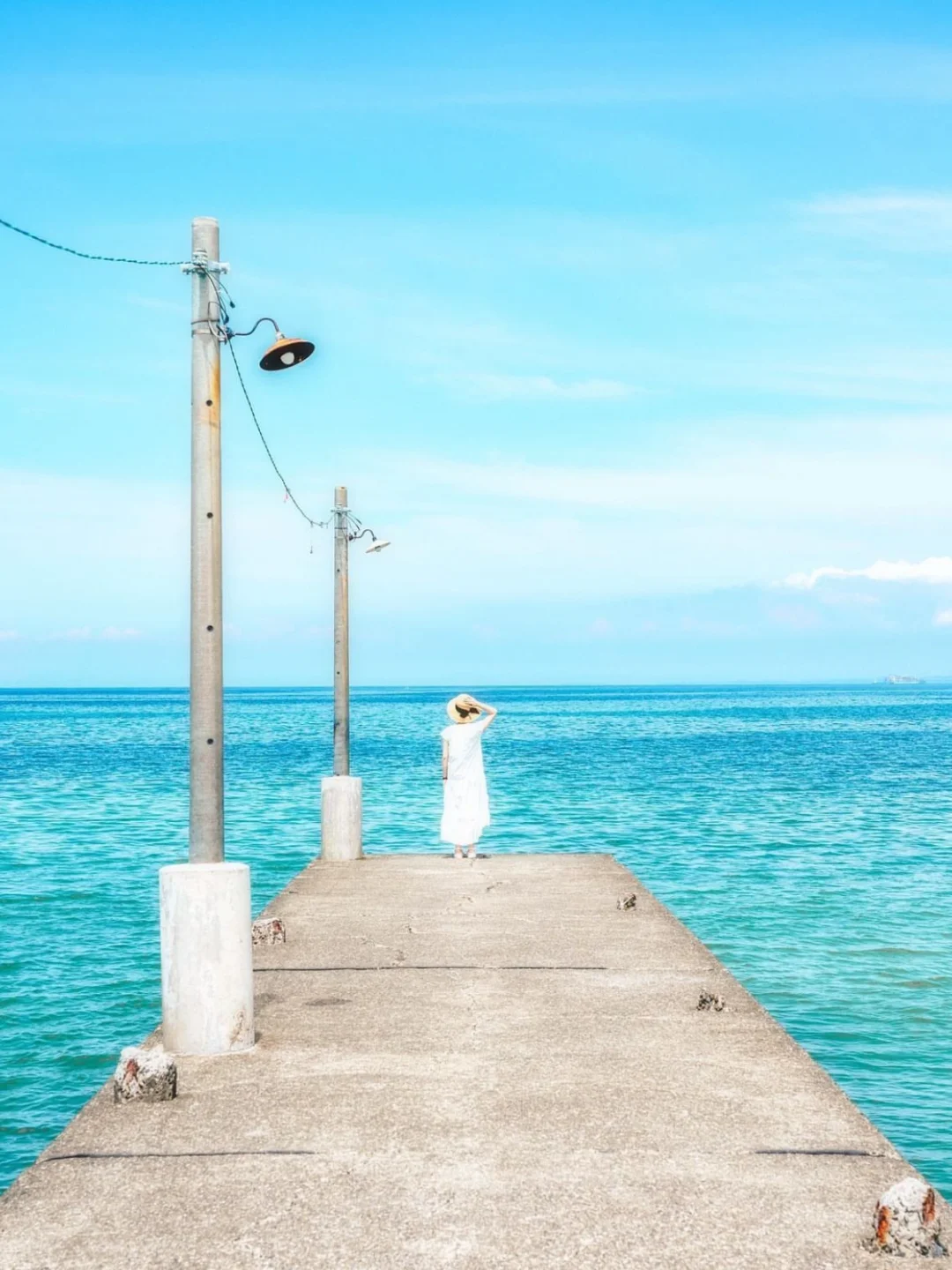 🔹无论是何种天气,栈桥的景色都不会令人失望。天晴时海天一色,海水蔚蓝广阔,美不胜收。阴天虽然色彩感不强,但会增添一丝神秘和emo的感觉~