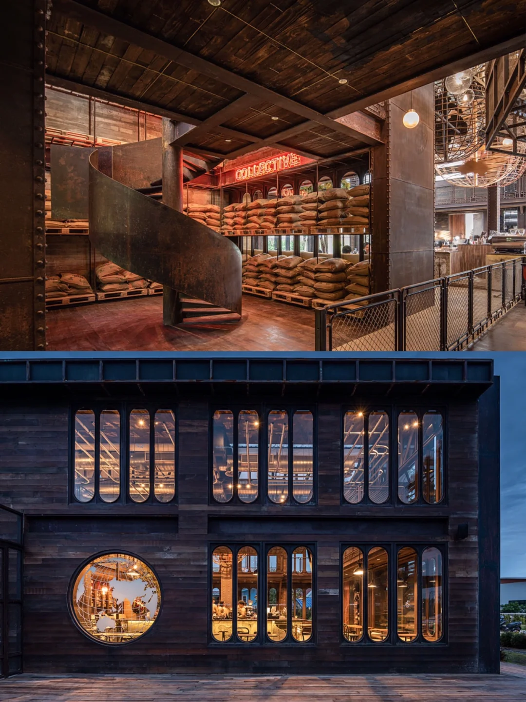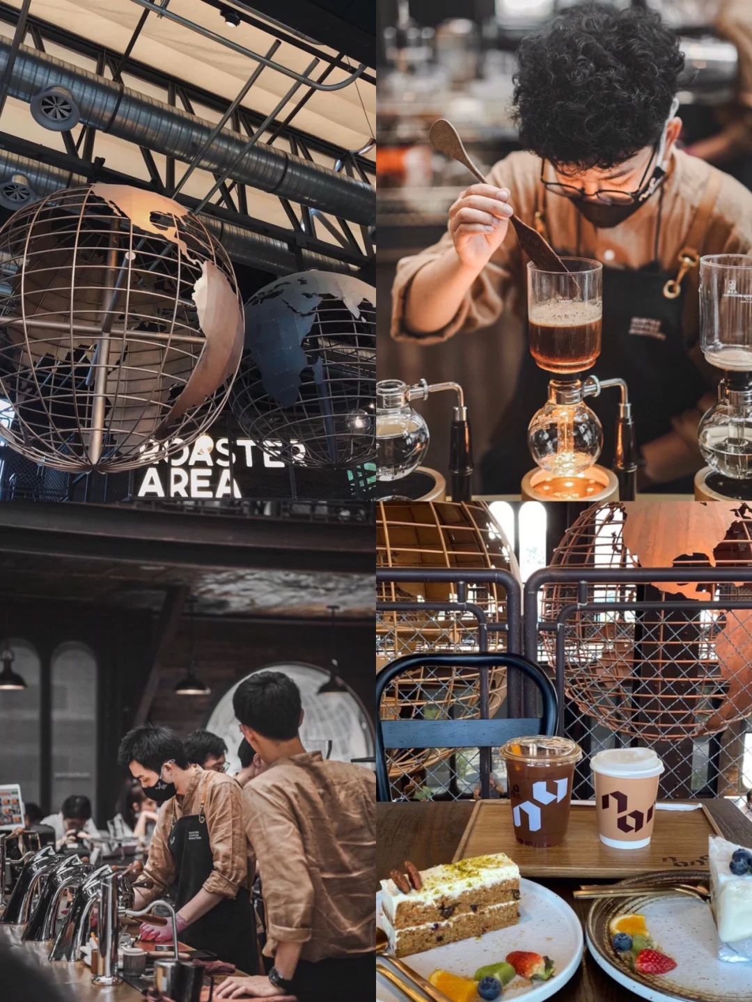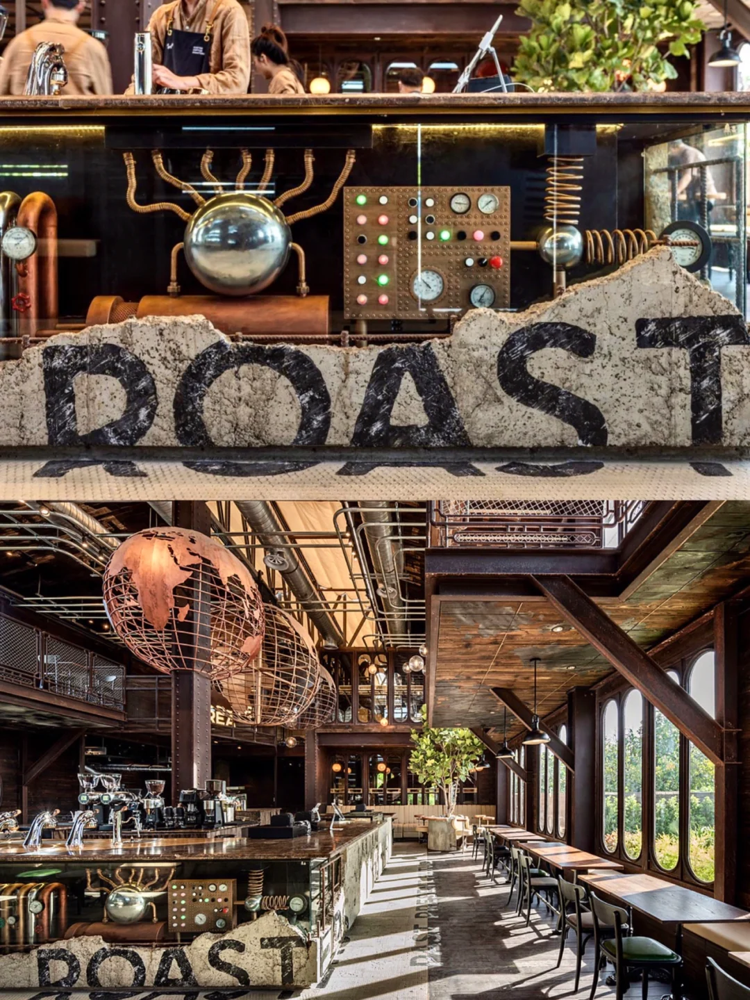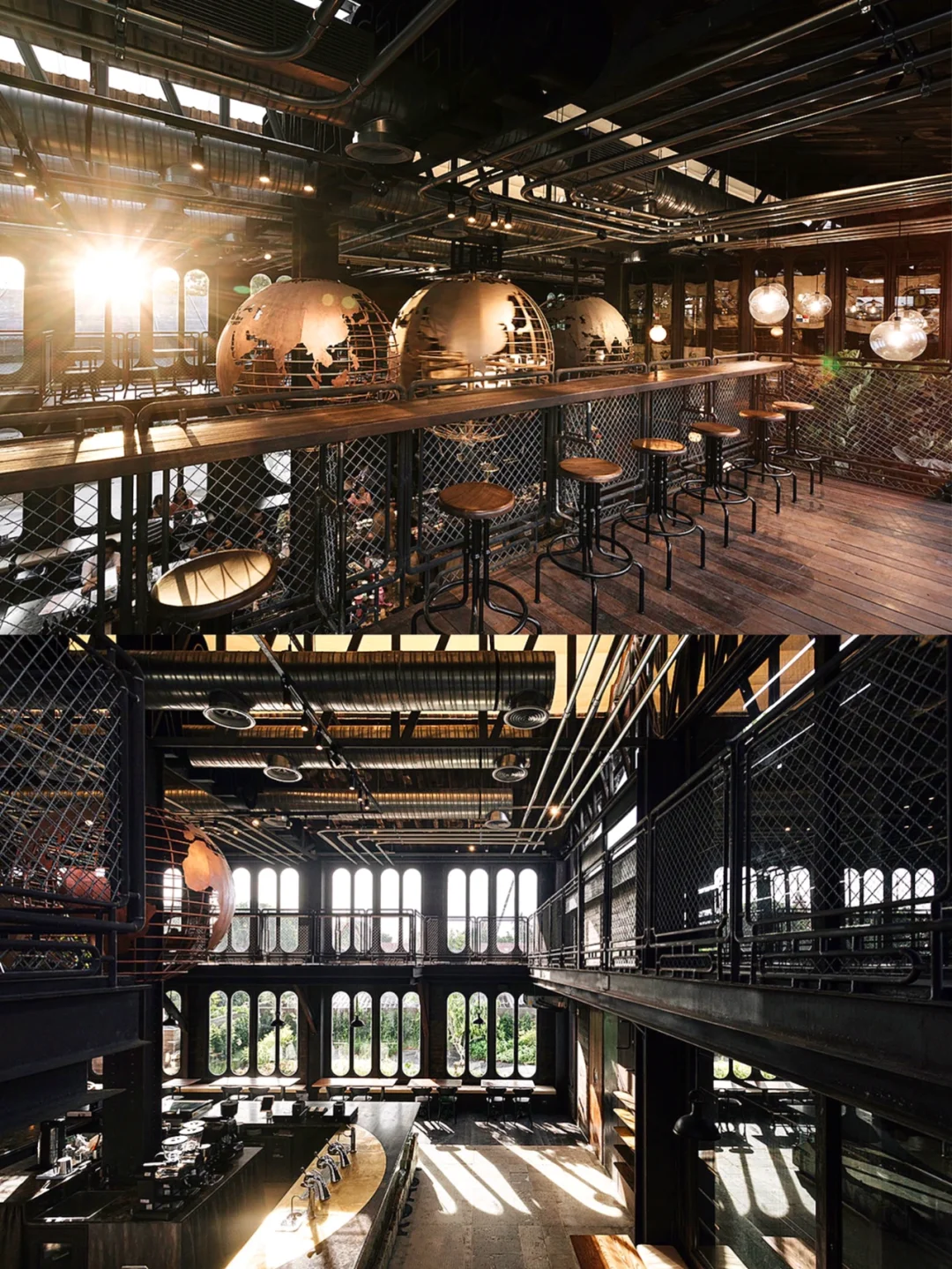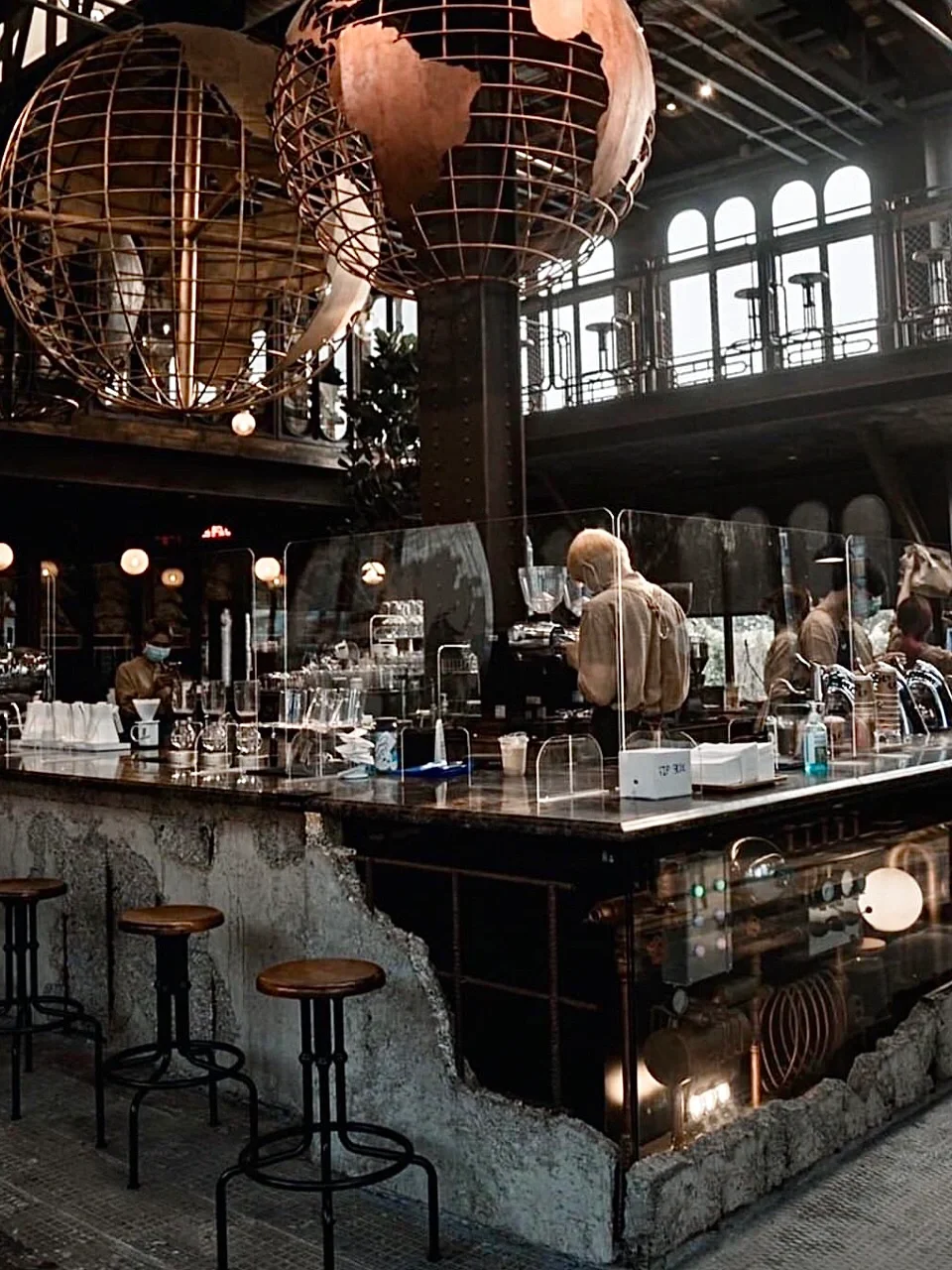 ▪️ 超有设计感的一家工业朋克风咖啡厅,从二楼俯拍整个空间很壮观!