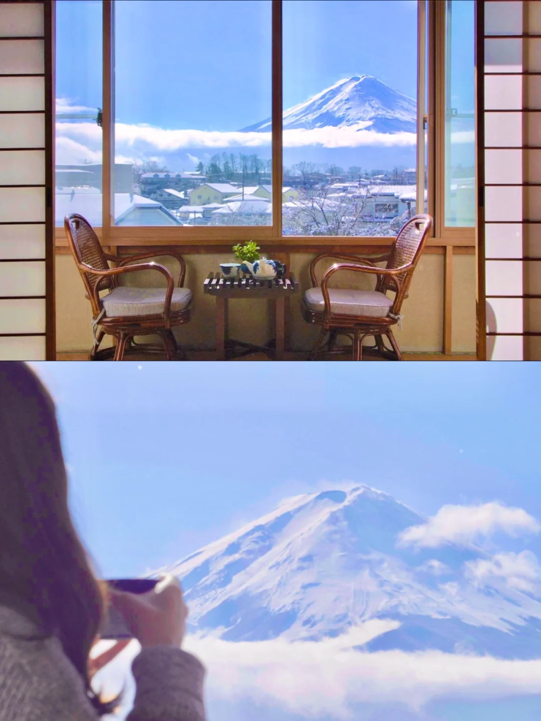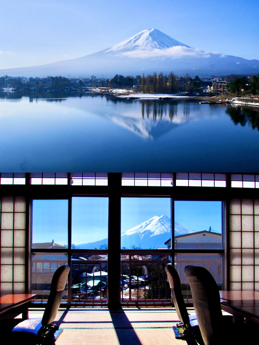 今天hoho来为大家种草性价比超高的日本富士山民宿了!!这家民宿也是【❤️彼迎】上新推出的「日本周边特色榜单—— 富士山榜」的🥇No.1!即将去富士山旅行的小伙伴们一定要收藏起~\n-\n🏠民宿名:Traditional experience with best Fuji view! Aoiso\n📍位置:日本, 山梨县, 南都留郡, 富士河口湖町小立1297-1 あおい荘\n-\n💡民宿亮点:\n▪️ 房东家族经营这家传统日式民宿已经45年了,这家民宿给人家一样的感觉~\n▪️ 在房间就能欣赏富士山美景绝对是这家民宿的亮点~透过窗户就能欣赏到哦\n▪️ 传统日式风格的房间,有榻榻米和舒适的蒲团床,还提供了传统和服👘\n▪️ 日式的浴室位于楼下,把提示牌从\"开放\"翻转到\"使用中\"即可变为私人浴室哦\n▪️ 民宿附近是非常典型的日本村庄风情,自然风光无限好~\n-\n🛀入住体验:\n▪️ 离河口湖很近,房东妈妈亲切温暖,早上推开窗见到富士山心都温暖了~\n▪️ 民宿比较古老,但房间很干净,人均💰150rmb+的价格也很合理!\n▪️ 晚上还能泡温泉,房间虽然没有独立卫生间,但是共用的也非常非常干净!\n▪️ 房东妈妈的早饭也是日式传统的,非常美味!\n▪️ 步行10分钟即可到达餐厅、7-11便利店等~\n-\n🌈民宿周边及交通:\n▪️ 🚶\u200d♀️步行3分钟可到达富士山和富士湖的景点\n▪️ 🚶\u200d♀️步行8分钟可到达日本温泉。\n▪️ 湖边有和服博物馆、薰衣草公园、纪念品商店、缆车等\n\t\n