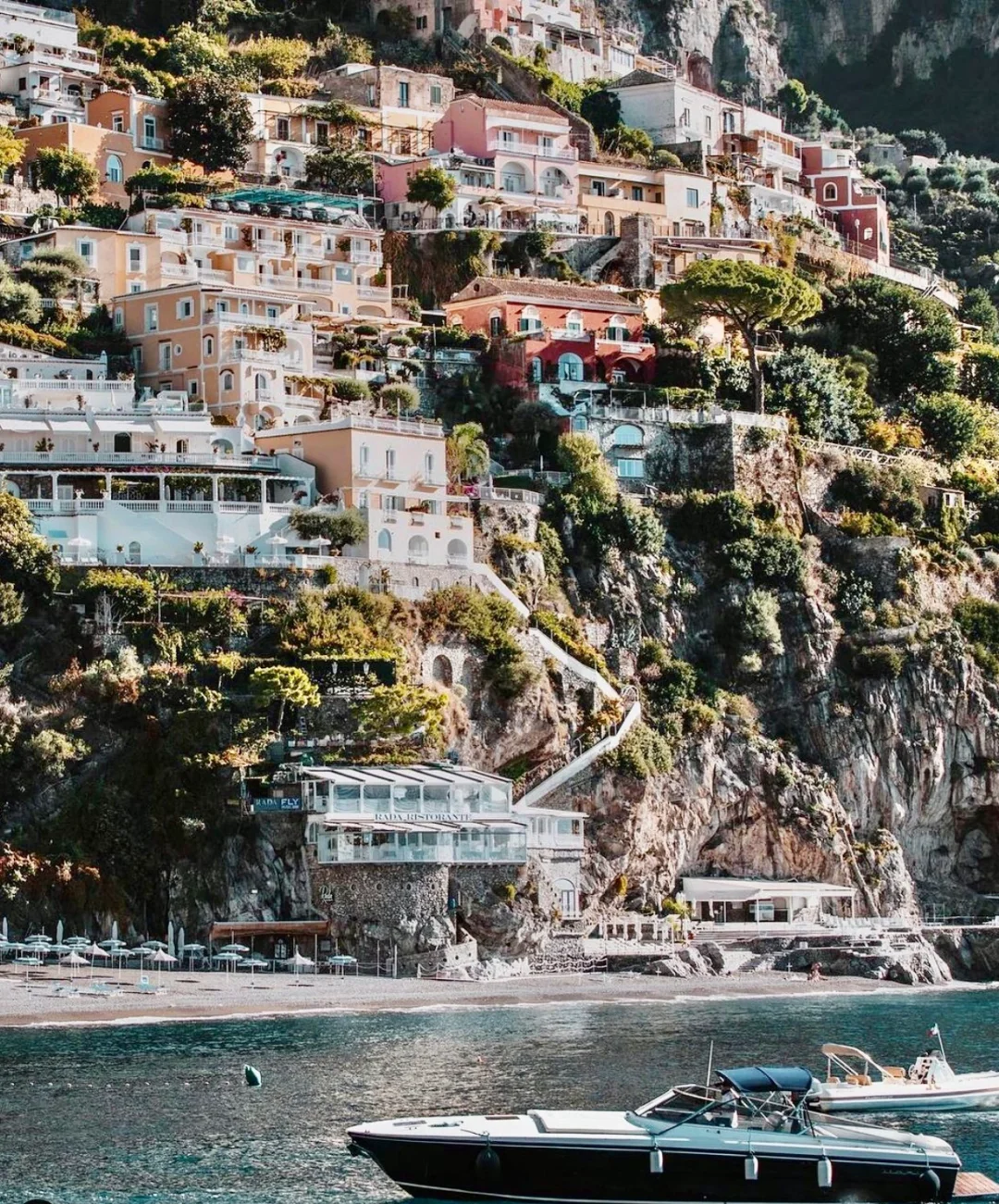 波西塔诺是意大利南部阿玛尔菲海岸最漂亮的小镇,小镇上的房子都盖在悬崖上,小巧而精致,而且房子五颜六色、鲜艳夺目,与湛蓝的海水、蔚蓝的天空和悠悠的白云相互印衬,鲜花星星点点的点缀着小镇,更加神秘和美丽