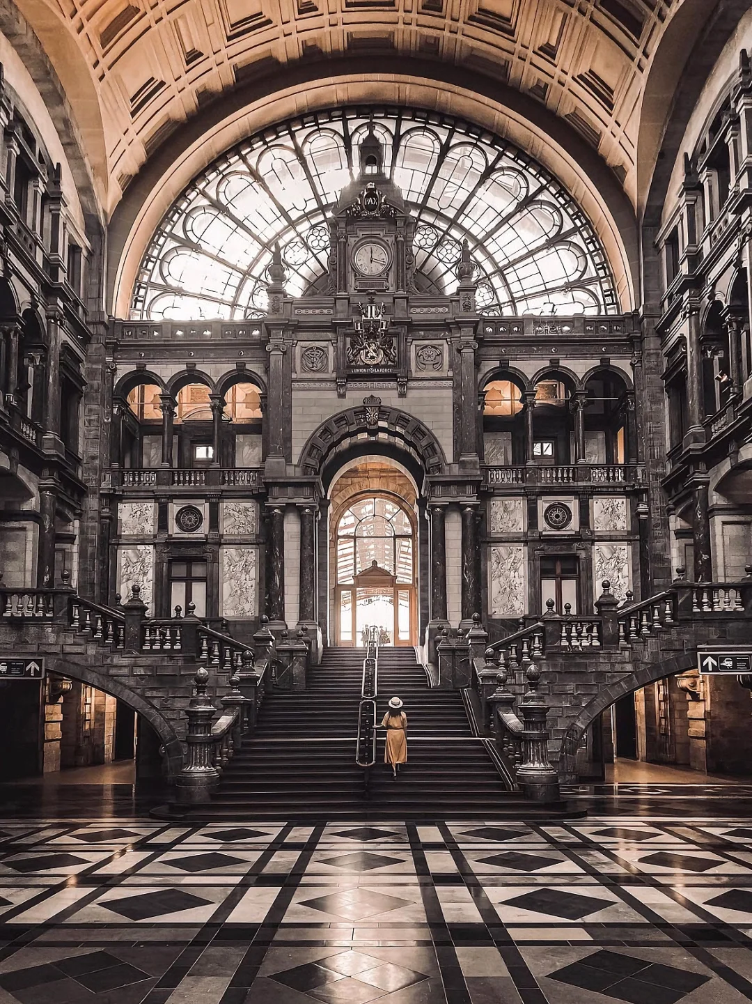 🔹 安特卫普中央火车站也被安特卫普居民称为“Middenstatie”或“铁路大教堂”,于 1905 年落成,覆盖站台的钢结构和石制车站建筑以不拘一格的风格相结合