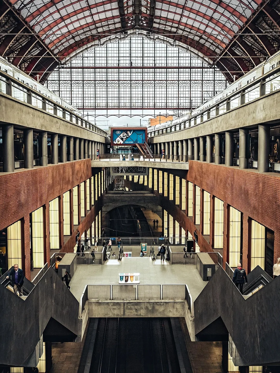 🔹安特卫普火车站是一座真正的铁路大教堂,最初每天只有 10 列火车,现在它是一个4层14条轨道的火车站,火车穿梭其中,新旧融合的很奇妙