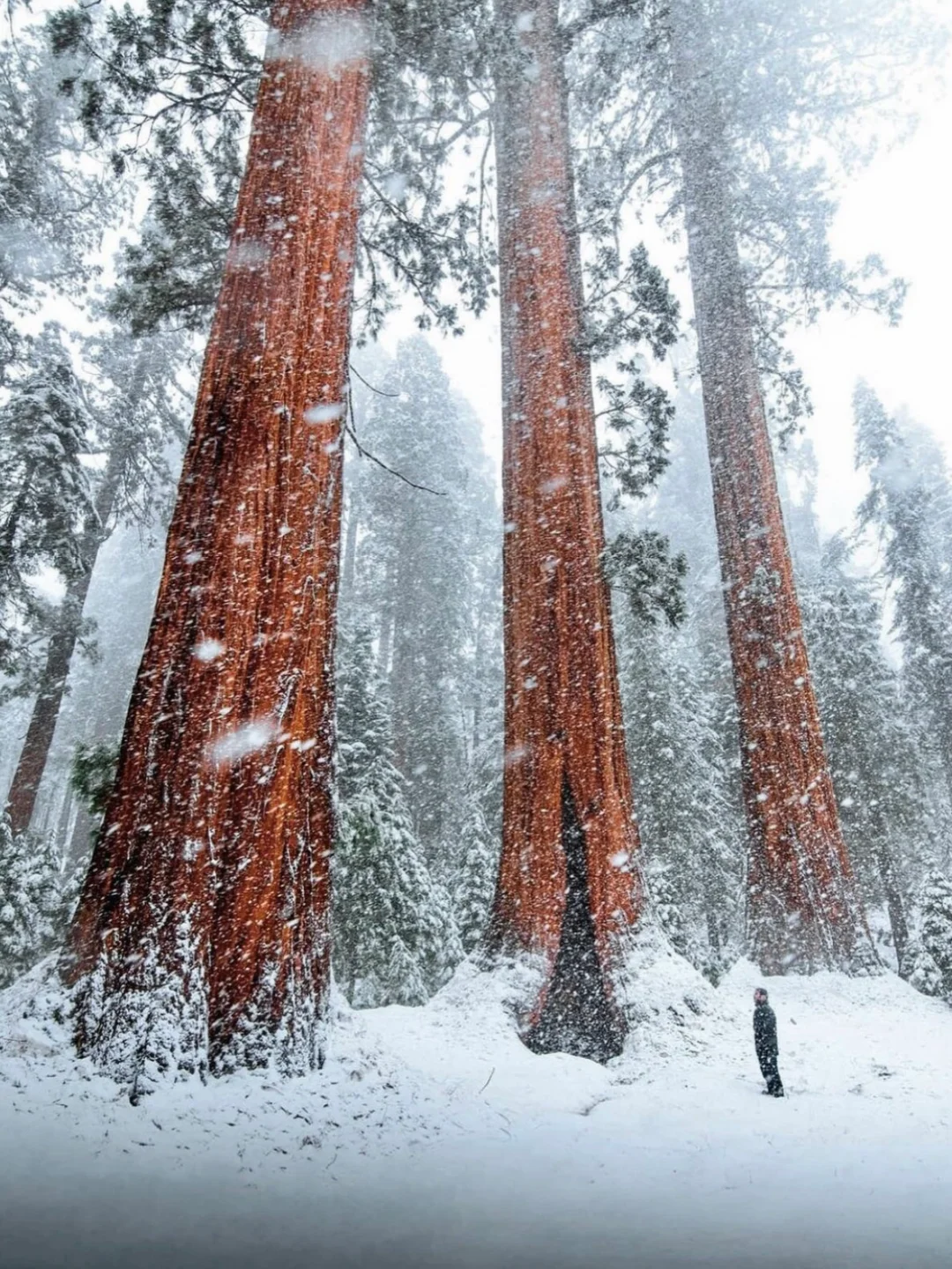 说到美国必打卡的国家公园,红杉国家公园必定有一席之地,尤其冬天,仿佛穿越进雪中的巨人国❄️