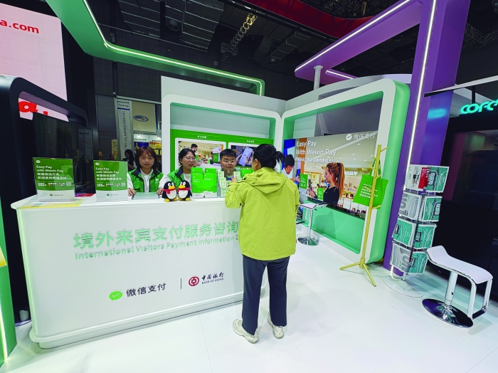 微信支付联动中国银行,首次搭建了进博会入境支付服务台。记者温婷摄