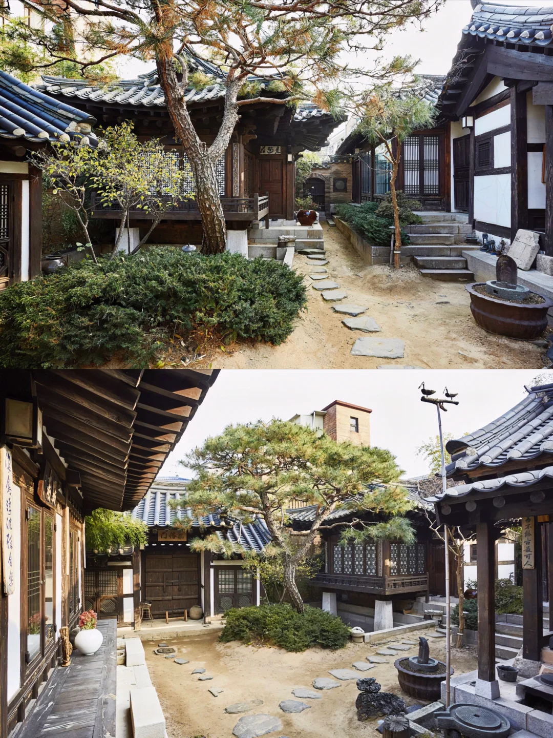 ▪️ 优雅的大门后,是整洁舒适的韩屋,花园中散落着竹子和松树,每块露台和石头都设计的恰到好处