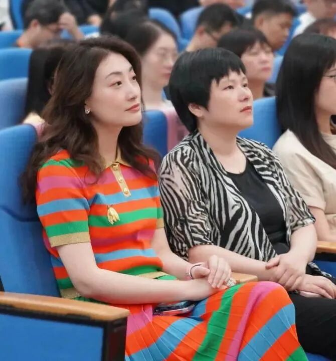 今年6月的时候,宗馥莉和祝丽丹一起参加了宏胜集团第二届职工代表大会,彼时,宗馥莉身穿一件糖果色系条纹碰撞色彩长裙,听着员工们交流各自的工作体会,坐在她旁边的那位就是祝丽丹。