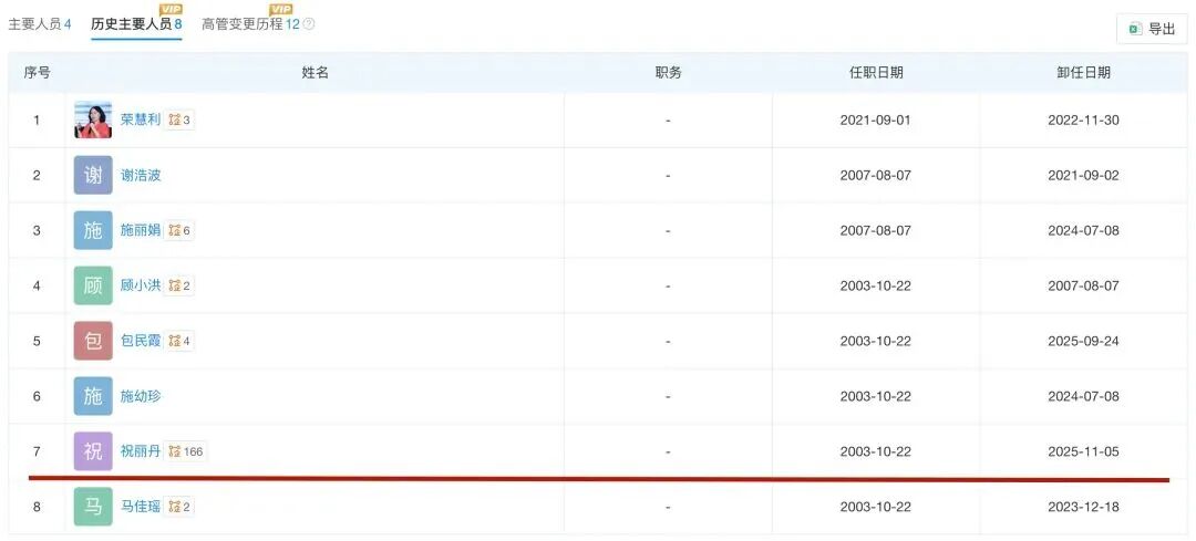 而祝丽丹的名字则被转移至历史主要人员名单之列。