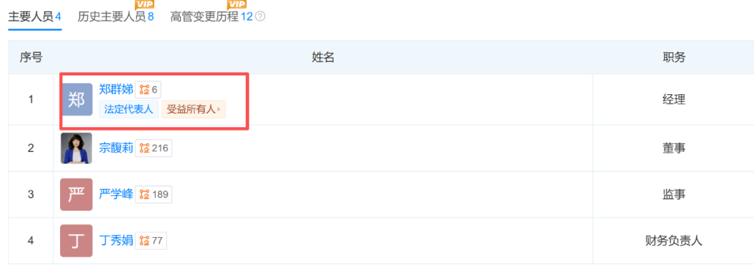再来看看郑群娣,她也是宗馥莉的手下干将。