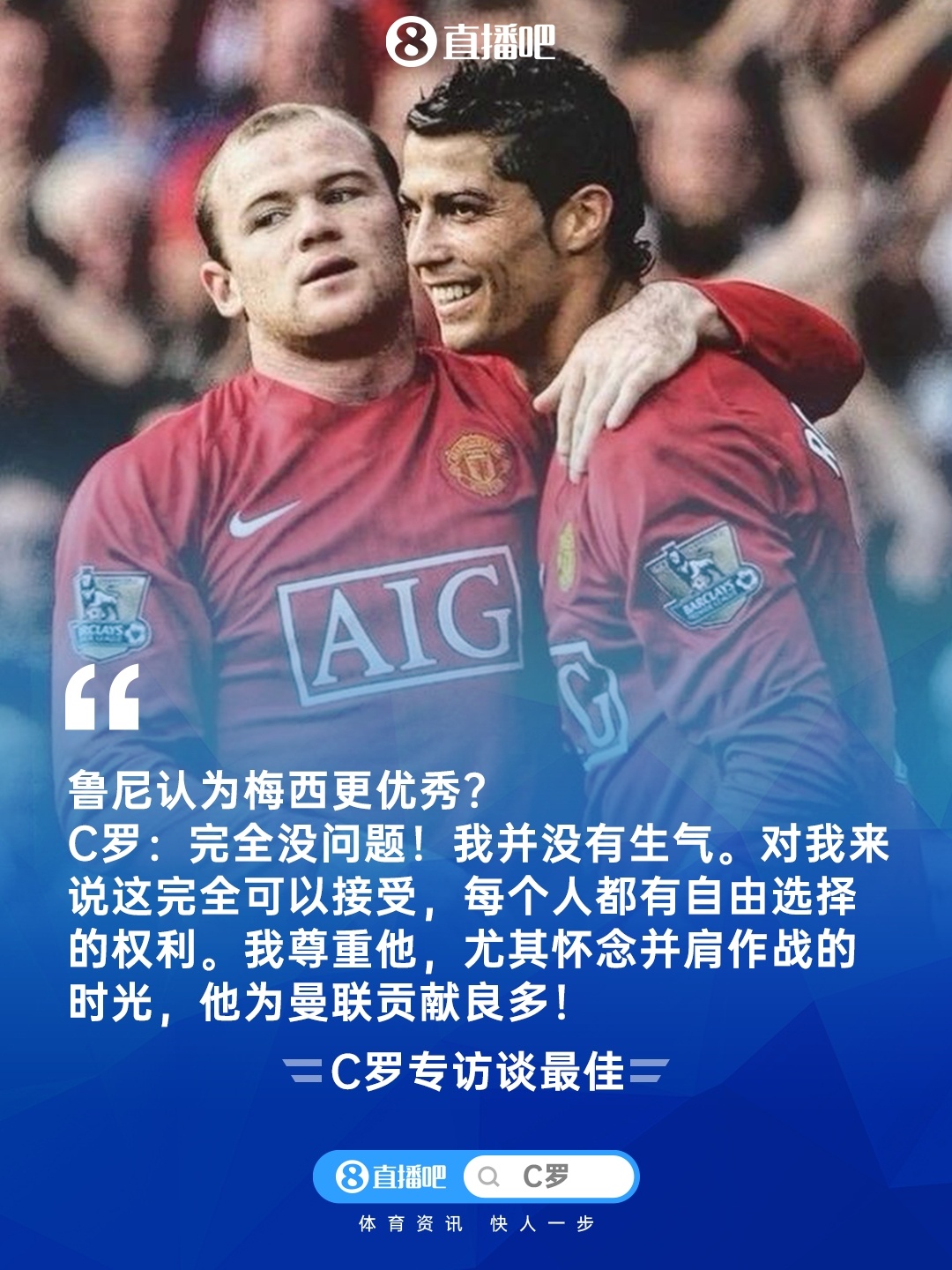 鲁尼称梅西更好?C罗:完全没问题,我不生气,我尊重鲁尼的选择