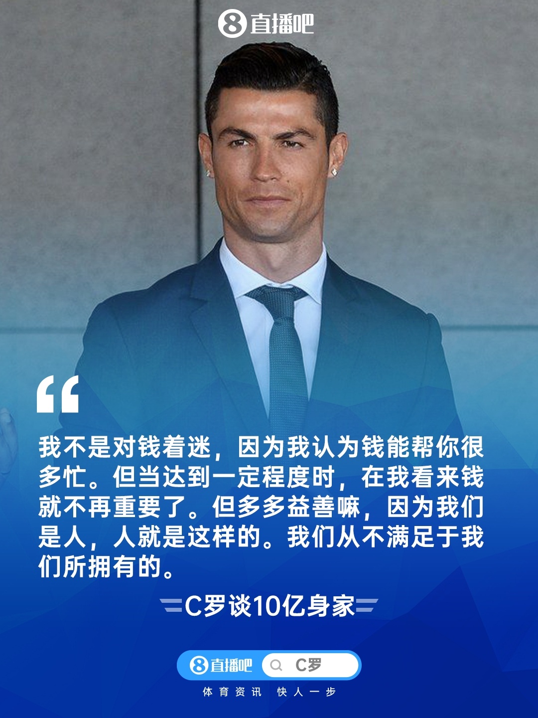 不在乎钱罗总裁C罗:10亿刀身家?到了一定程度钱就不重要了