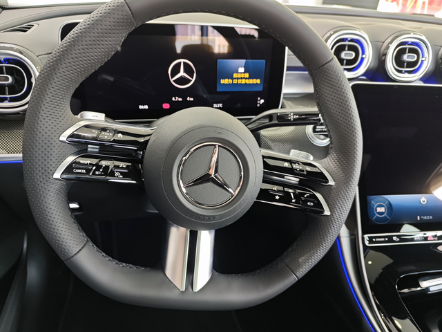 到店体验奔驰C级,豪华氛围不错 1️⃣外观:外观看起来大气时尚,超长的车头比例舒展,让车辆看起来比较豪华。多幅的轮毂造型,看起来十分运动和有力。前中网星辉闪闪加上奔驰的大标,情绪价值拉满,开到哪都气场十足。前中网设计的略微前倾,让车辆充满攻击性和运动感。 2️⃣内饰:内饰方面是奔驰C级最大的竞争力。各种细节运用了软包皮质,木材,塑料等各种高档材质,造型独特,做工精致。氛围灯点亮后,更是把车辆的科技感和豪华氛围拉满。 3️⃣座椅:座椅造型好看,并且坐上去对腰部的支撑和对身体的包裹感很好,由于前轴距离够长,所以前排具有充足的腿部空间,几乎可以把腿伸直,后排的腿部空间也很充足,前后座椅一直坐上去就给人放松舒展的感觉。 ⭐缺点: 1️⃣配置:配置比较低,全系都是1.5t发动机,作为一辆豪华品牌的中型车,只能说是够用。中低配车型没有电尾门,没有座椅的通风,加热,按摩等功能。并线辅助等功能竟然只有顶配车型才有。 2️⃣智能化:智能化水平不够,虽然车机较上代车型有了较大的提升,整个界面也做的比较漂亮,但是功能性还是有所欠缺。 3️⃣坐姿:坐姿偏矮,有坐在地上的感觉,时刻让人感觉比较紧张,长时间乘坐可能会比较疲劳。 4️⃣座椅用料:全系座椅用料都是仿皮材质,并且不是很柔软的仿皮,按说豪华品牌不应该用仿皮座椅。如果能换成真皮材质,那么触感细腻程度以及透气性等方面会更好。 5️⃣储物空间:车内储物空间比较少,中控扶手箱较小,门板上的小格也有点儿偏小,随时物品可能会没有地方放。
