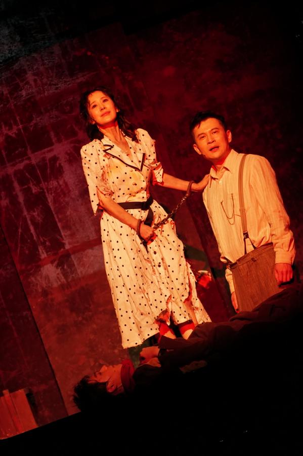 话剧《死无葬身之地》中的吕茜(左)和若望,分别由海清和章劼饰演。