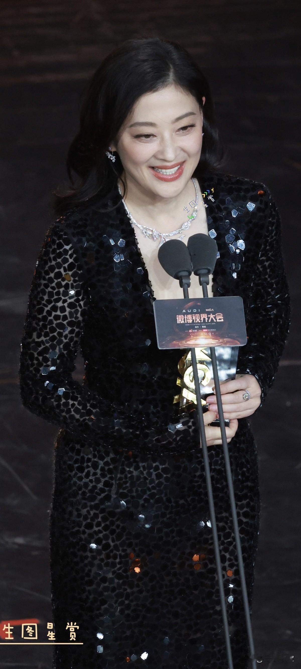 梅婷微博视界大会内场 黑色开胸亮片礼服,美得移不开眼