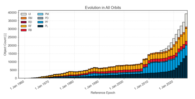 《2025年太空环境报告》显示,地球轨道上可追踪物体数量随时间变化图。图表