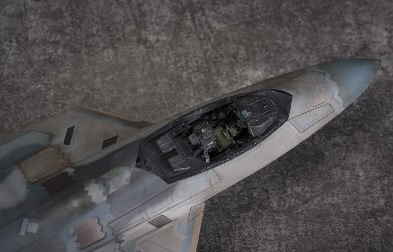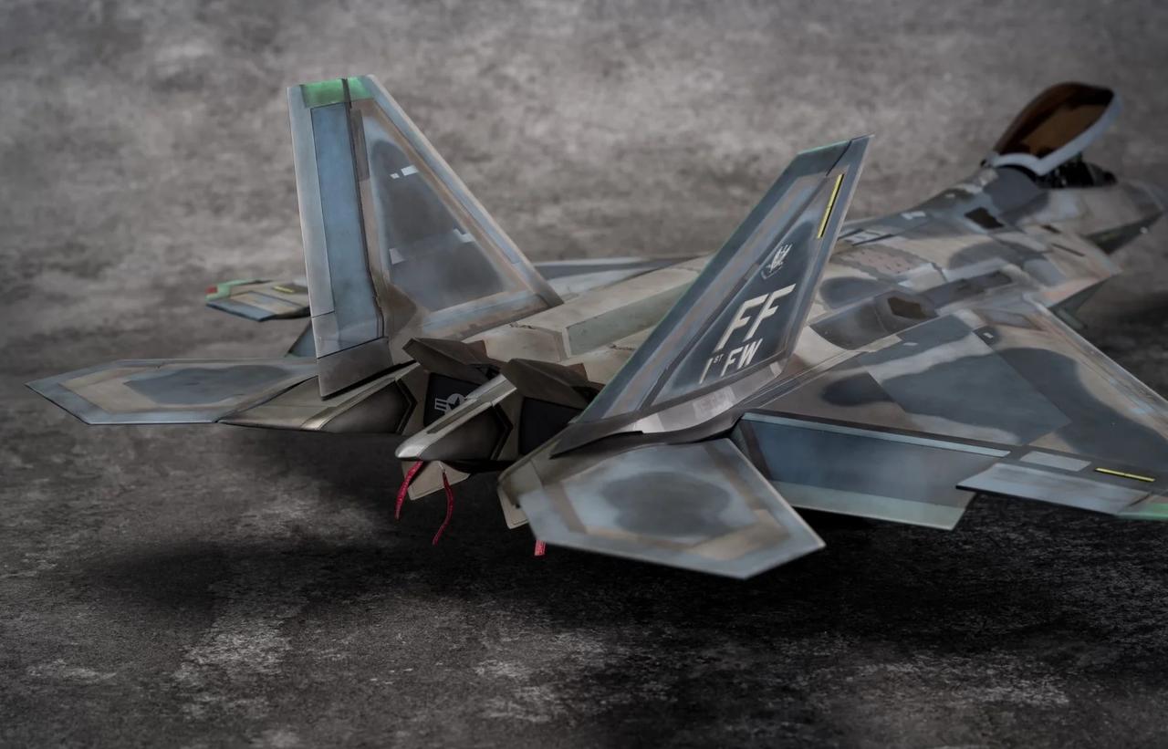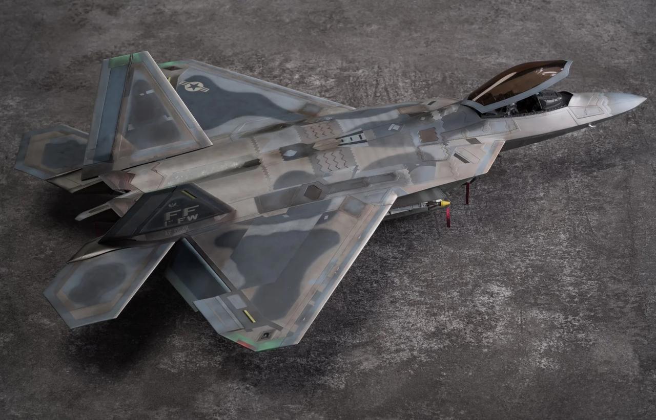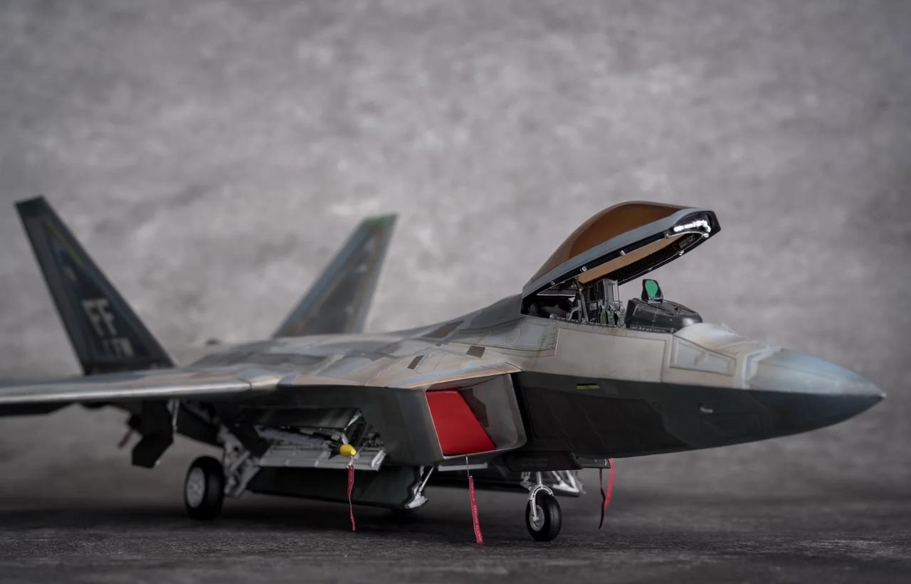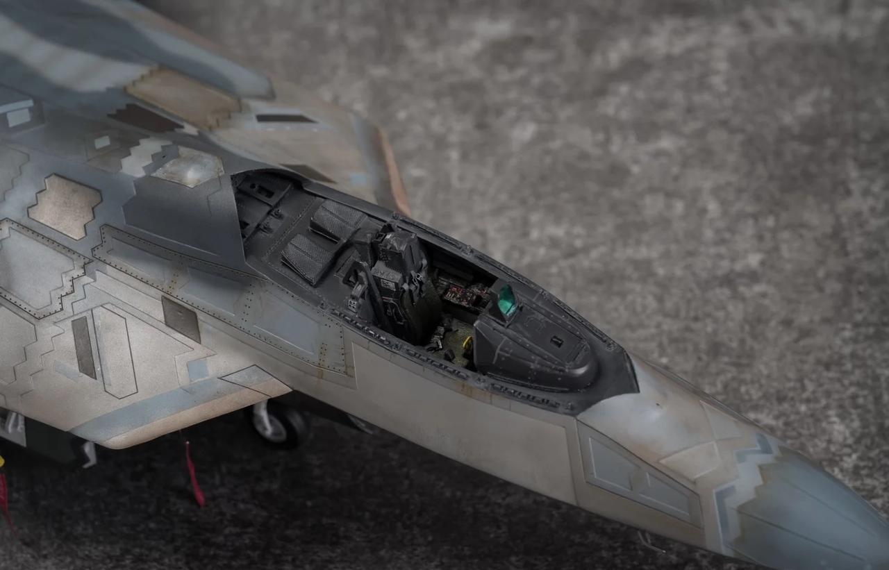 1/48 F-22 Raptor猛禽战斗机制作完毕! 定妆照放出! 也是得益于氧化铁隐身涂层还有牢美拉胯的后勤维护,猛禽战斗机的隐身图层也呈现出独特的腿色旧化状态。 所以这次的涂装主题就以重口味为主。机背选取了飞行表演队的一架涂装,应该是飞的比较多平时经常拉出来风吹日晒,腿色掉漆无数后又反复刷了新的补丁涂层上去,最后呈现除了迷彩补丁反复叠加的复杂涂装状态。这也算是牢美现役猛禽里补丁较多的一架了。主翼翼尖和斜垂尾边缘腿色呈现出的淡绿底漆层也算是这架的特点之一了,个人非常喜欢,比其他的猛禽金属色补丁漆面蒙皮又多了一点颜色跳跃。 机底选择了另一架,主翼大面积腿色后,淡绿色底漆从金属漆面若隐若现透出来也是比原本灰蒙蒙的金属色涂层面更有看点。机背机底不是出自同一架(考证什么的不存在的[偷笑]),而是分别来自个人比较喜欢的两架的实拍照片。照片其实根据光线天气角度和拍摄者的风格也会和实机有所区别,涂装也是以照片为基础加入了偏个人喜好的理解。 因为选取的涂装参考照片也是猛禽里比较复杂的,实际制作涂装的过程也是cpu持续过载,掉了不少头发[扶额R],蒙皮色的调漆都调了20多瓶,还不算临时调的一些深浅变化和金属色半金属色的变化,不过好在完成后也算是自己比较满意的完成度了。 军事模型 飞机模型 模型 军模 模型制作 五代机 手工日常 比例模型 模型涂装
