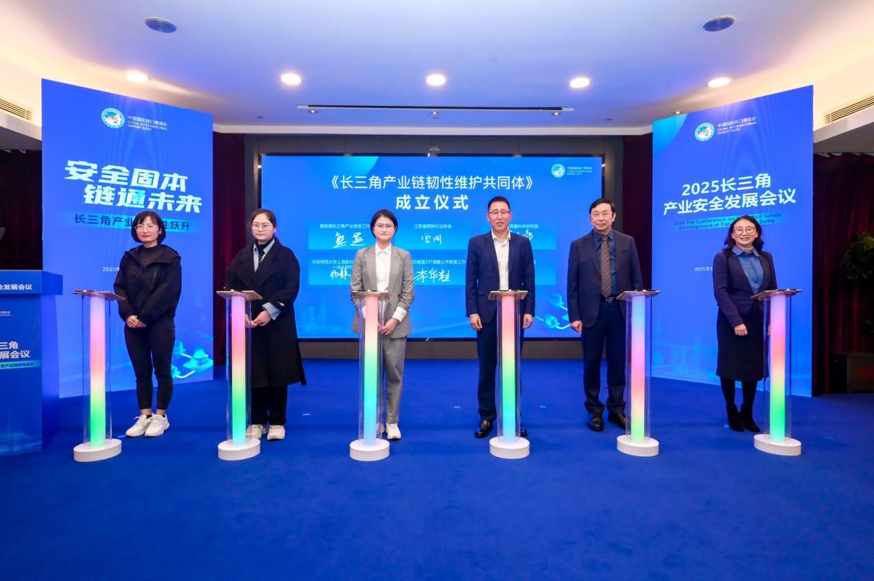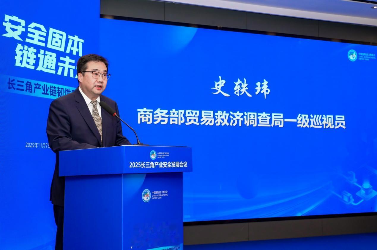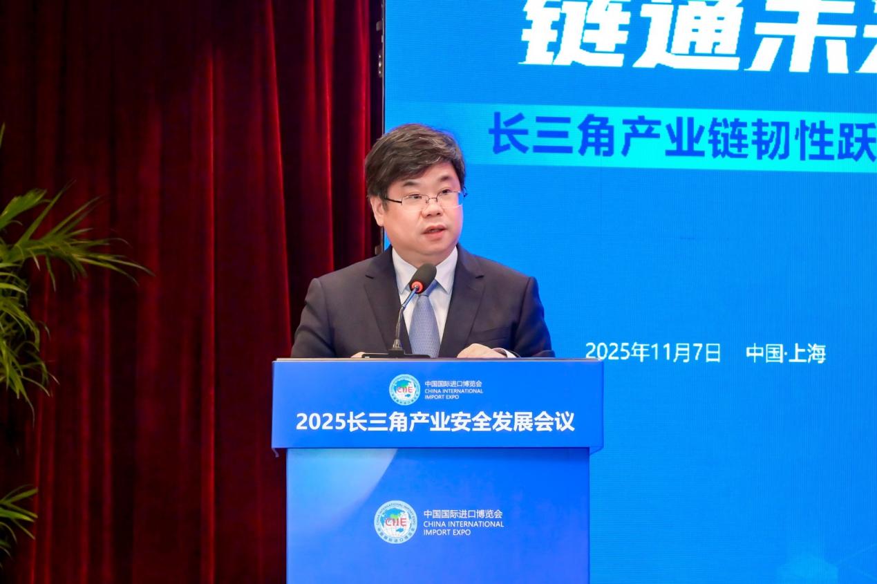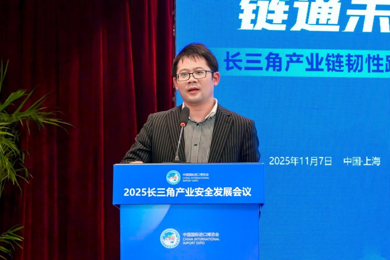 11月7日,第八届中国国际进口博览会重要配套活动——“2025长三角产业安全发展会议”在沪举办。本次会议以“安全固本,链通未来-长三角产业链韧性跃升”为主题,由沪、苏、浙、皖长三角三省一市商务主管部门指导,商务部长三角产业安全监测工作站、上海产业安全监测与预警研究中心共同主办,上海产业技术研究院承办。
