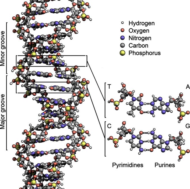 沃森探索DNA结构受物理学家薛定谔影响,而合作伙伴克里克是物理学出身,由此来看,物理思维对DNA结构问题的解决具有重要影响。按照物理学及物理化学的观点,成对电子最稳定(DNA双链与碱基配对);根据泡利不相容原理,成对电子方向必须相反(DNA两条链方向相反);物理学定律大多符合右手定则,而DNA也为右手双螺旋。在这些原理基础上并结合实验数据,沃森和克里克最终提出DNA双螺旋的结构:DNA是一种由两条方向相反的DNA单链构成、内部存在碱基配对(A与T,G与C)的右手(right)双螺旋分子。