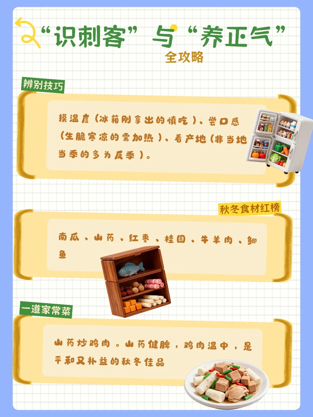 秋冬“正气”食材红榜:南瓜、山药、红枣、桂圆、牛羊肉、鲫鱼。