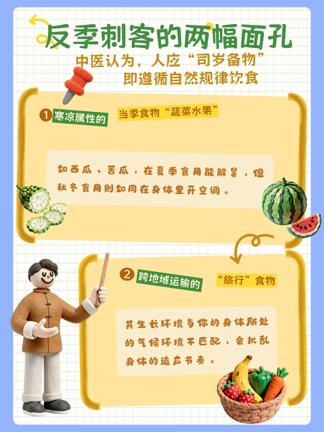 中医认为,人应“司岁备物”,即遵循自然规律饮食。反季食物主要分两类: