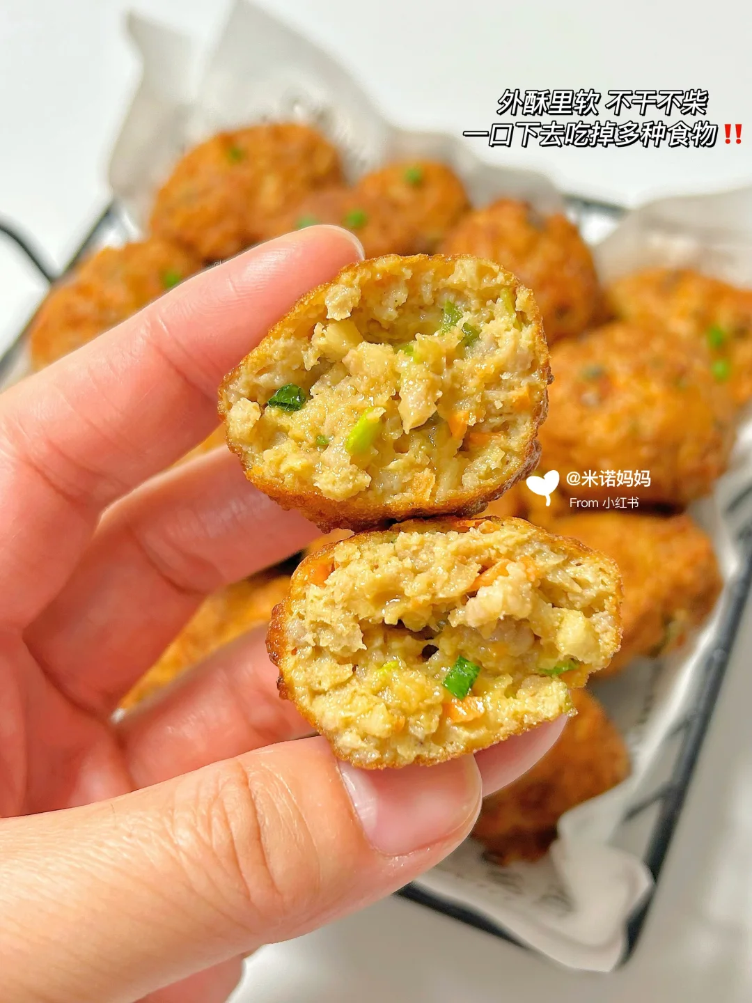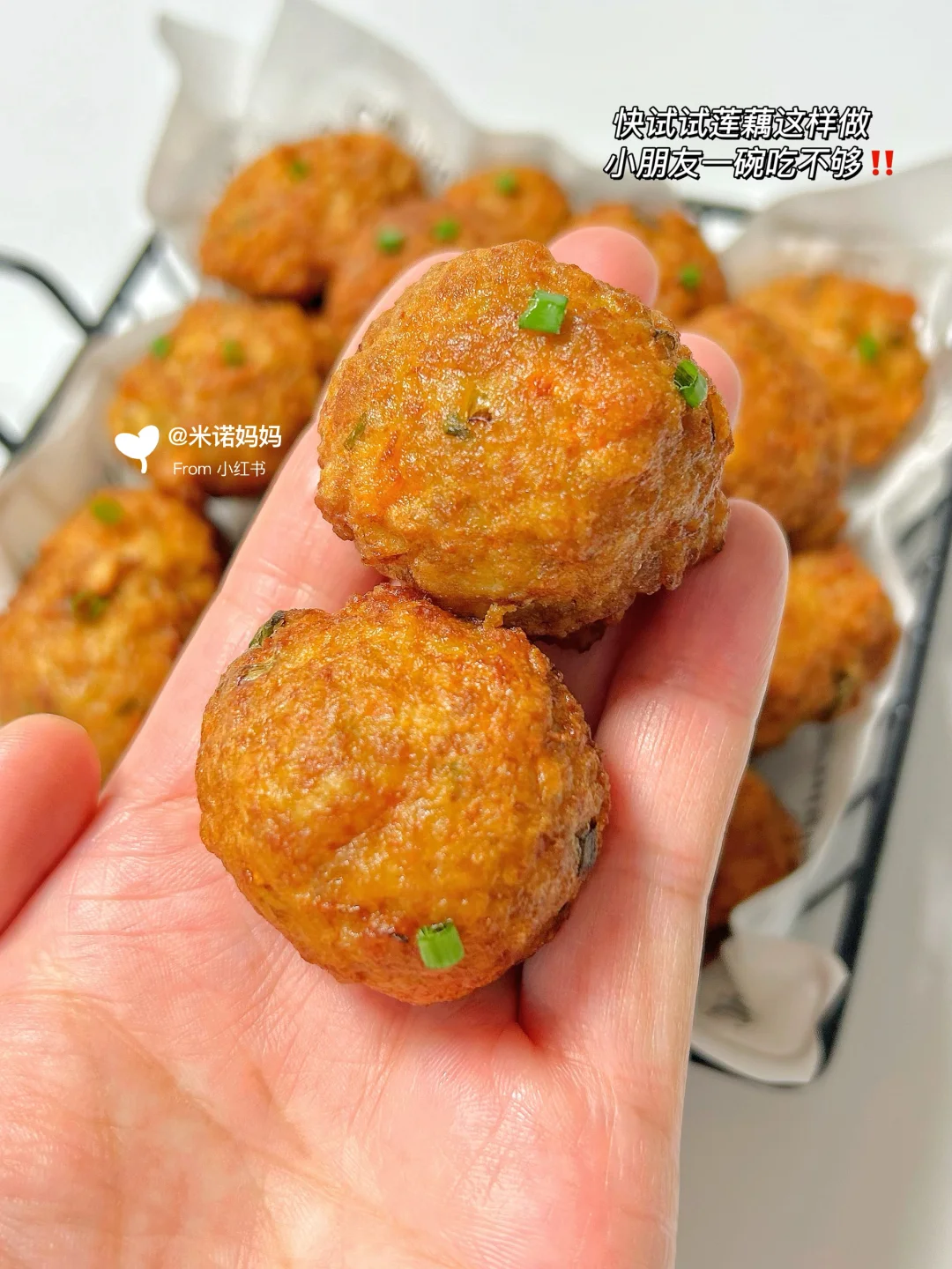 Hi 大家好呀❤️ 今天分享我家小朋友每周都点名要吃的莲藕肉丸~ 外酥里软,肉嫩多汁,一口下去吃掉多种食物,小朋友一口一个,一人能炫一碗,好吃停不下来呀,秋冬吃莲藕的季节,大家都快去做🥰 - 🌈准备食材 猪肉末 | 莲藕 | 胡萝卜 | 香葱 | 🥚蛋2个 | 玉米淀粉 | 面粉 👩🏻🍳具体教程请看图文哦~ ✔️调料可根据喜好做调整,大人可撒椒盐~ ✔️面粉、淀粉量根据肉量增减,搅拌呈粘稠状✔️下去肉丸后转中小火炸至金黄~ - 集美们都去冲,巨好吃呦,等大家交作业啦~