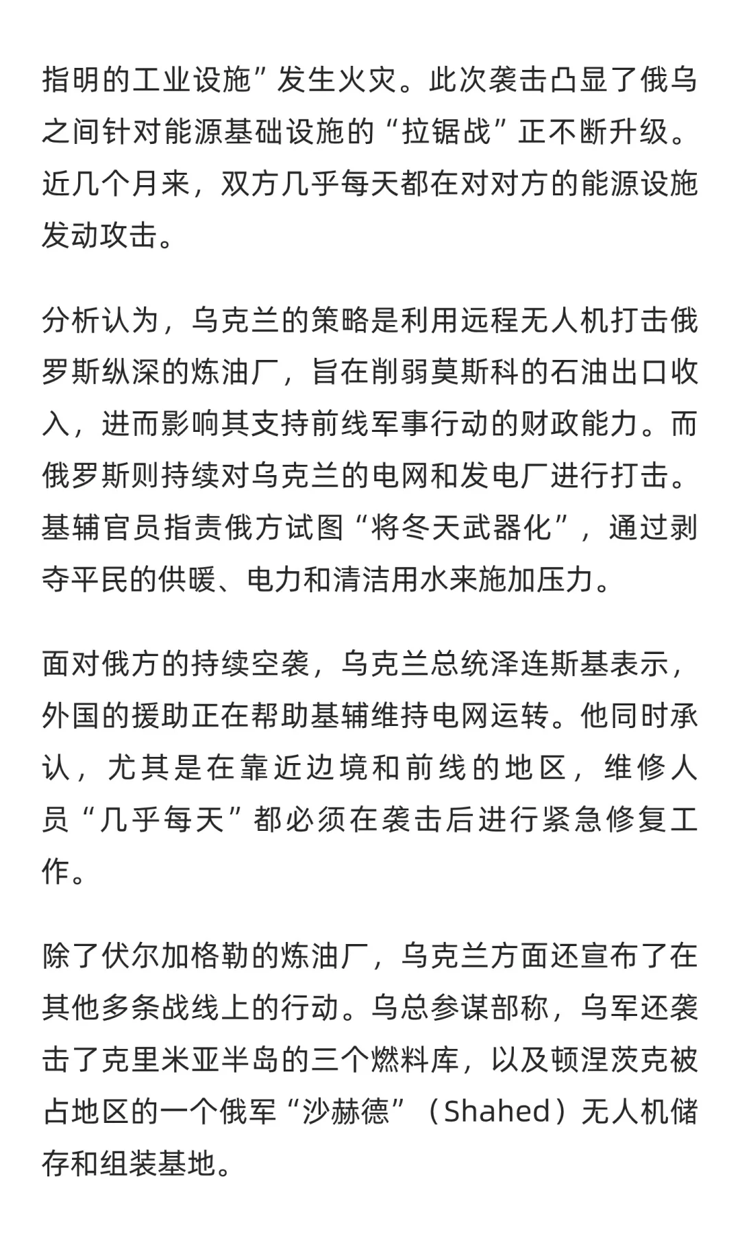 乌克兰再袭俄大型炼油厂,双方无人机战持续