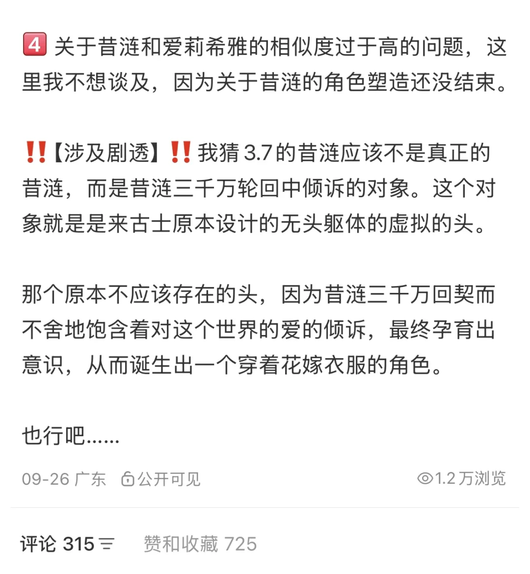 作为崩3往事乐土老玩家,我其实对烧鸡的写作思路和表达意图是很清楚的,所以猜中3.7的设定并不会很难。