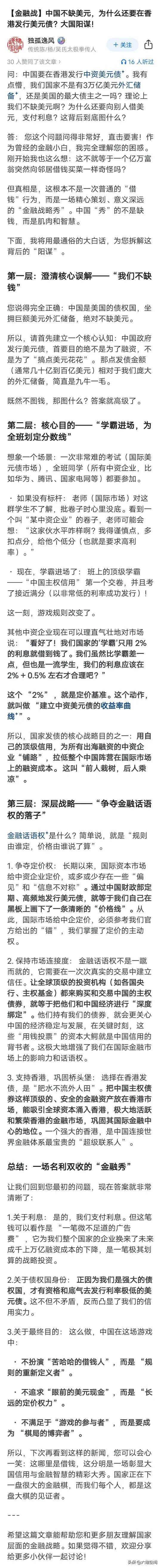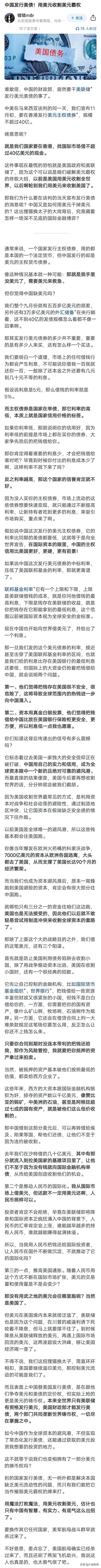 中国要到欧洲发欧元债了,刚刚在香港发40亿美元债,现在又要到欧洲发行40亿欧元债,这出手也太快了,用美元收割美元,用欧元收割欧元,欧美看着不舒服,但也没有什么办法,到底怎么个收割法,找了两篇文章,大家可以参考一下,我们反正不会随便去做一个东西的,肯定是经过周密的决策才会去做的,所以你可以看到我们现在越来越主动了,出手也越来越频繁了,而且都打在霸权的关键节位上!