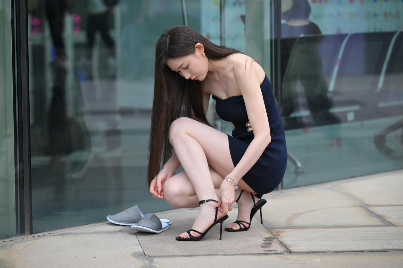 一个长发女孩穿着短裤在户外。微胖的女生怎么穿搭才可以遮肉超短裤女人