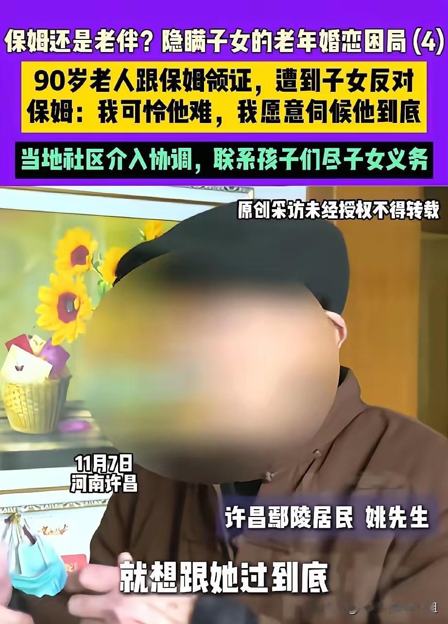 河南许昌,90岁大爷生活无法自理,儿女给他请了位住家保姆,每月1600元。刚开始一切顺利,可一年之后,老人儿女发现父亲竟然瞒着他们,和保姆偷偷领了结婚证,儿女觉得保姆心思不纯,分明是想占父亲便宜,瞬间气炸,也不再给她结算工资。谁知,保姆却满腹委屈,说证是老头非要领的,她啥也不图,就想照顾老人,怕他饿死。对于截然不同的两人说法,大爷站出来表示:她是个好人,我想和她过到底。 这事儿一下子把王阿姨推到了风口浪尖上。原本清清楚楚的保姆身份,因为一纸结婚证变得复杂起来。在子女眼里,王阿姨从“打工者”一跃成了“女主人”,之前谈好的一年工资大约1万9千元,他们觉得没必要再给了——哪有妻子照顾丈夫还要领工资的道理?可王阿姨觉得委屈,她解释说领证是为了“伺候方便”,甚至哭着说“我要找个老头,人家谁不笑我”。大爷的态度很明确,承认是自己主动提出领证,并强调“愿意与她生活到底”。一场简单的劳务纠纷,瞬间变成了情感、金钱、伦理的混合战。 夕阳恋背后往往是现实的算计。这事儿让人心里挺不是滋味的。咱们得承认,老年人也有追求情感陪伴的权利,保姆和雇主产生感情也不是什么稀奇事。但问题在于,这种关系很容易变味。类似的案例并不少见,有的雇主追求保姆,但当保姆提出正当要求(如领证结婚、共同分担家务)时,却被骂“不识抬举”。更极端的,像有的保姆与雇主共同生活十余年,付出真感情和大量精力,最终却可能因缺乏名分和法律保障而被轻易打发,难以获得应有的经济补偿。许昌这位大爷的子女最担心的,恐怕就是父亲名下那点财产将来会落到保姆手里。他们的担忧并非全无道理,毕竟一纸结婚证确实改变了法律上的权利义务关系。 老年人的情感需求常常被亲人忽略。咱们也不能光指责保姆。子女们气愤之余,也许该冷静想想,父亲为什么宁愿偷偷和保姆领证?九旬老人行动不便,日常生活极度依赖他人照顾。这种依赖感,很容易转化成情感上的亲近。大爷说和前妻没有感情,或许他在王阿姨这里找到了真正的陪伴和温暖。子女们可能忙于自己的生活,忽略了父亲内心深处的孤独。老人主动提出领证,未必全糊涂了,可能也是想用这种方式留住身边唯一的依靠。 保姆的劳动价值不该被婚姻关系抹杀。最核心的矛盾,集中在“工资”该不该付这个问题上。王阿姨照顾大爷近两年,付出了实实在在的劳动。不能因为一纸结婚证,就抹掉她之前作为保姆应得的报酬。有网友评论点出了关键:“结婚不结婚的只是一个名份而已,年龄大了才在一起的如果说多么有感情我是不太信的。” 也有网友认为,保姆身份从雇员变为女主人后,既有财产继承权还领工资不合适。但婚姻关系不该成为无偿占有他人劳动的理由。王阿姨的处境变得尴尬:走,可能一分钱拿不到;不走,可能就成了贴钱贴人的“免费保姆”。类似的情况在别的案例中也出现过,例如有雇主在追求保姆后,拿出协议要求对方签字,协议内容可能导致保姆的劳动变得像“免费保姆”。这提醒我们,无论关系如何变化,尊重他人的劳动价值是底线。 这事儿说到底,暴露了老年社会的一个难题:当情感、劳务、财产搅在一起,怎么理得清? 老年人再婚,特别是涉及保姆照顾的这种,最好能事先有个明明白白的约定。比如,婚前财产怎么处理,保姆的劳务报酬怎么支付,这些都摆在桌面上谈清楚。可惜现实中,很多家庭像许昌这家人一样,等到问题爆发了才来回拉扯。经过协调,两位老人表示愿意履行婚姻义务,互相照顾过好晚年生活。但之前的工资纠纷如何解决,报道中并未明确说明,这依然是悬而未决的矛盾。 各位读者你们怎么看?欢迎在评论区讨论。
