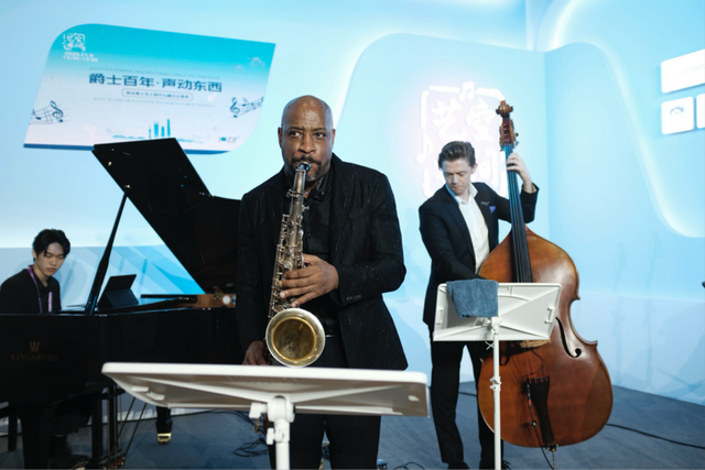11月8日,林肯爵士乐上海中心在第八届进博会新闻中心艺术空间带来一场精彩演出。连续第二年受邀参展,林肯爵士乐上海中心以“爵士百年”为主题,呈现一场融会东西方音乐精髓的跨文化对话。